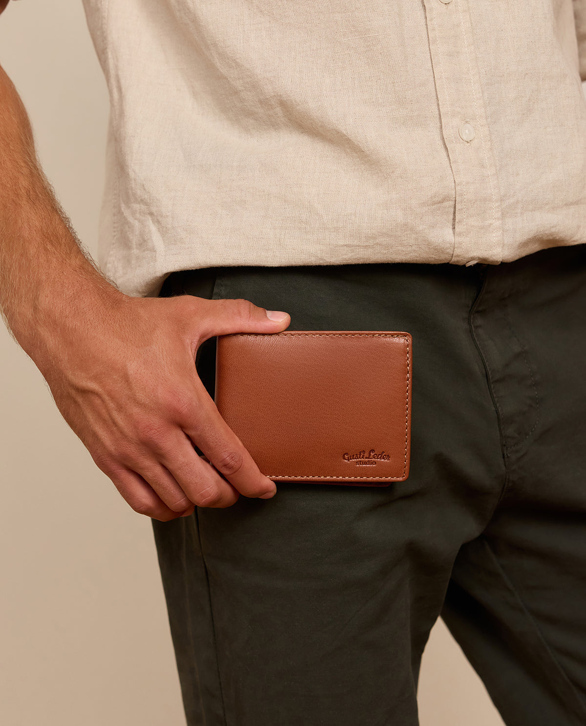 Portefeuille en cuir Porte-monnaie Hommes Marron Cuir