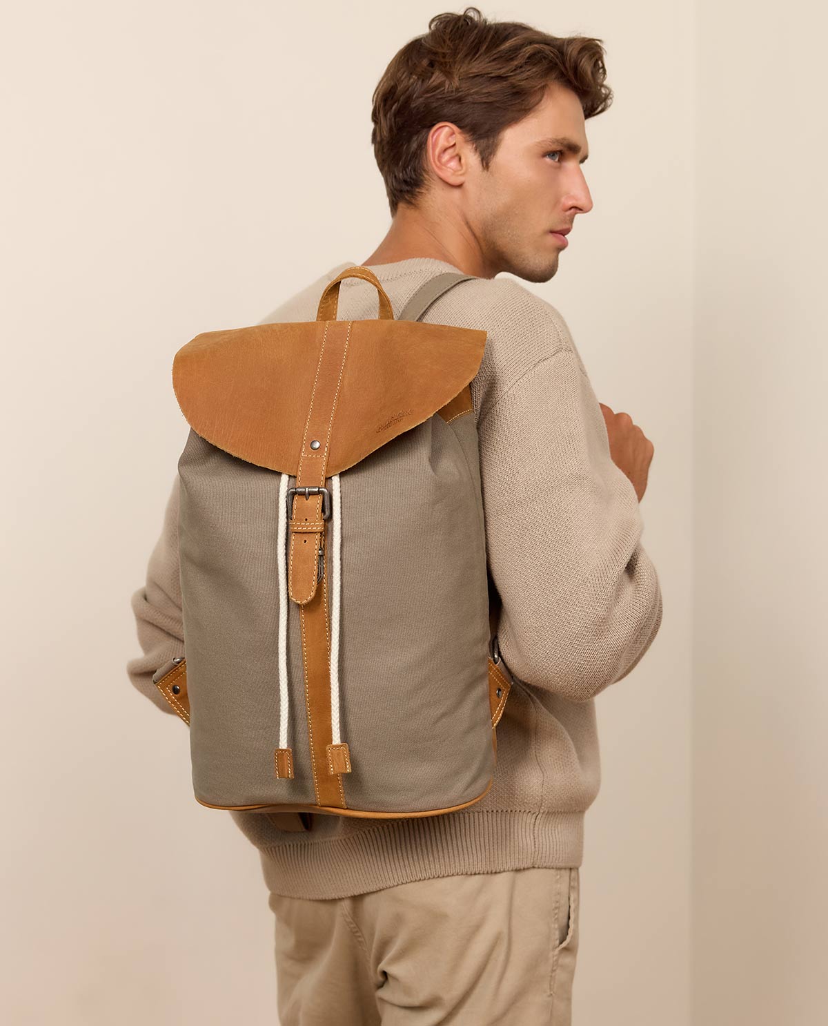 Sac à dos Sac d'ordinateur portable Grand sac à dos en cuir Gris Toile & Cuir