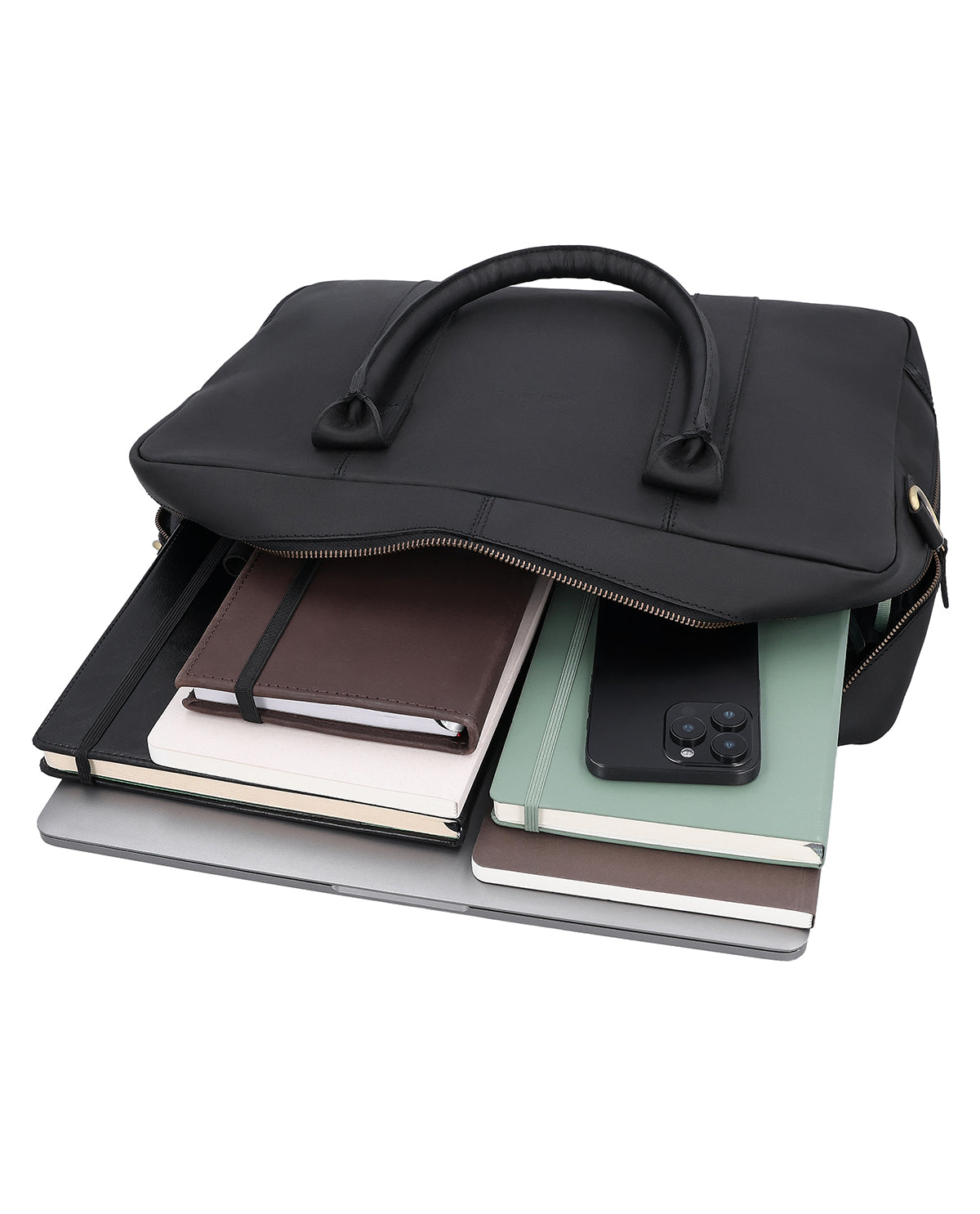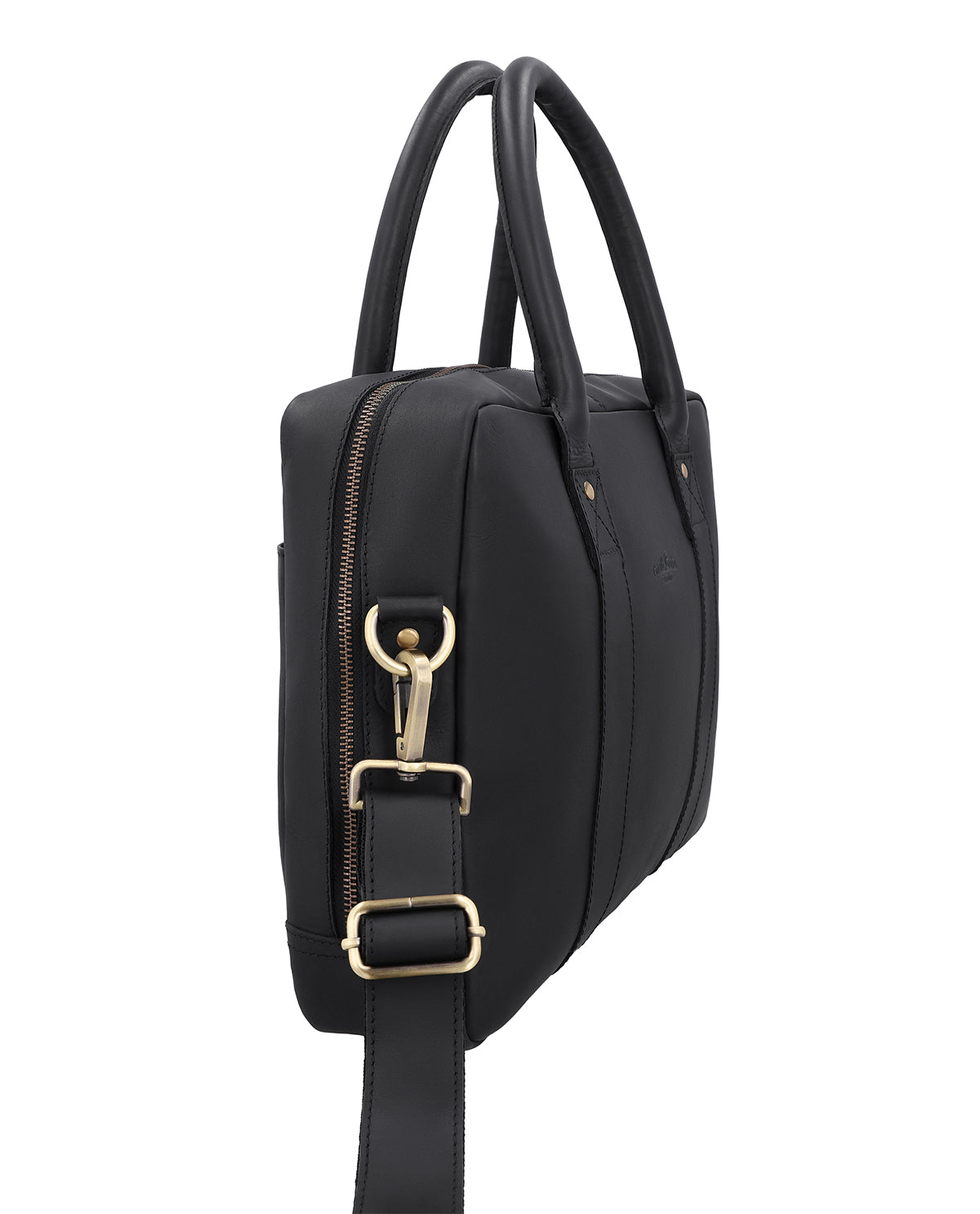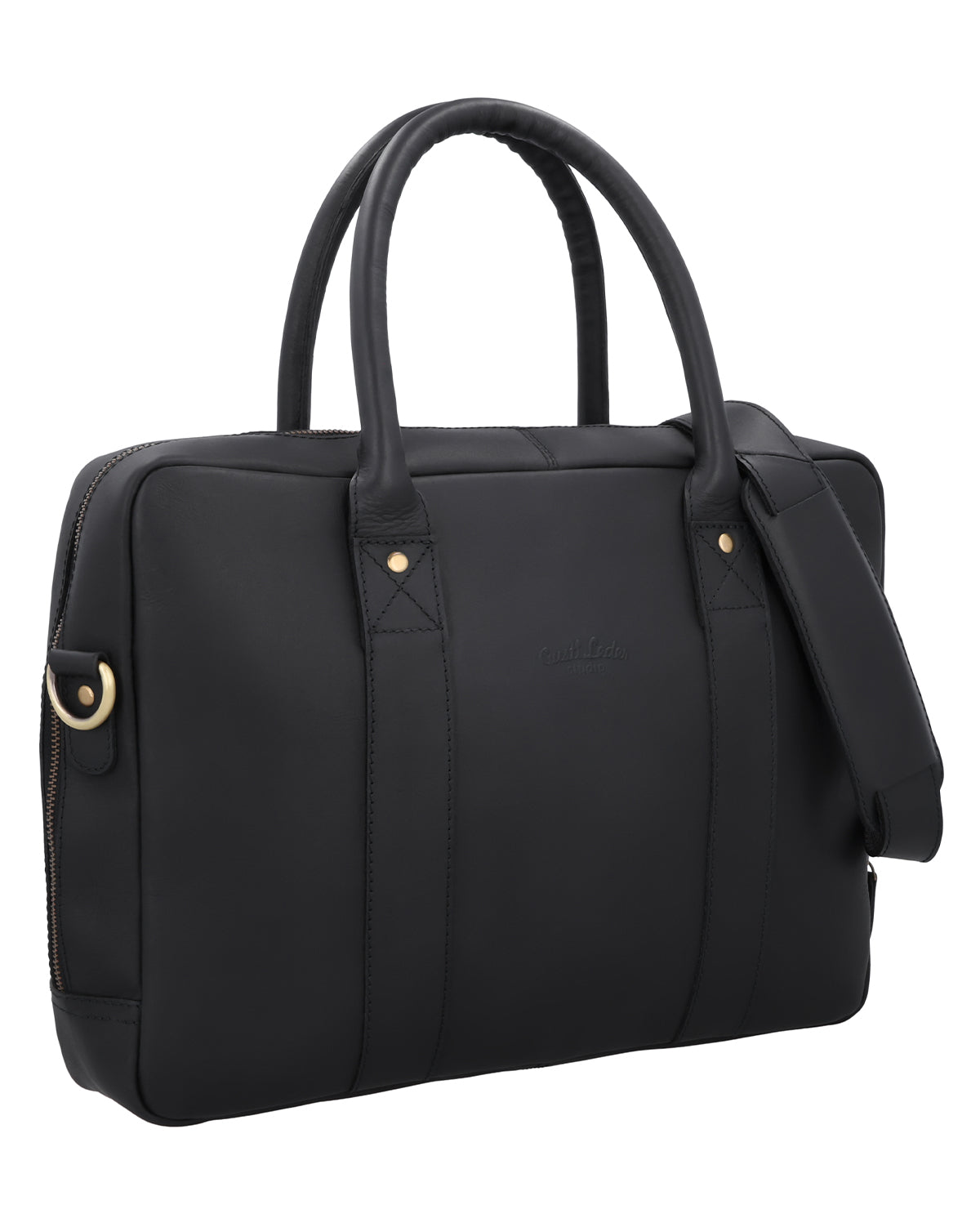 À l'intérieur, une poche zippée complète la disposition claire, tandis qu'un porte-clés intégré garde les objets importants à portée de main. La bandoulière réglable et amovible vous offre des options de port flexibles, soutenues par un rembourrage d'épaule doux pour un confort supplémentaire. Un patch gravé à l'extérieur vous permet une personnalisation personnelle. « Fynn » est un sac d'affaires en cuir noir pour femmes et hommes, qui allie fonctionnalité, stabilité et praticité quotidienne dans un design moderne.