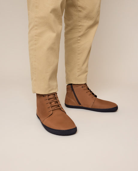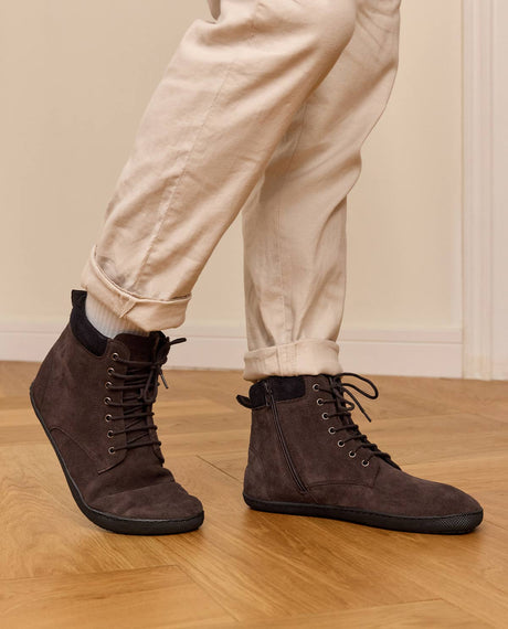 Nos chaussures sont faites de différents types de cuir, qui diffèrent en optique, en sensation et en durabilité. Le cuir de chèvre est particulièrement doux et flexible, idéal pour un ajustement lisse. Le cuir de croûte assure une structure robuste et résiste également à une forte stress, tandis que le cuir de buffle est particulièrement résistant et développe une patine unique au fil du temps. Choisissez le matériel qui convient le mieux à votre style et à vos besoins!