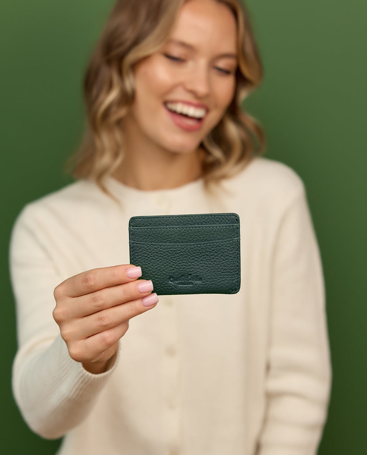 Pratique et élégant – le porte-cartes "Qani" en cuir vert foncé