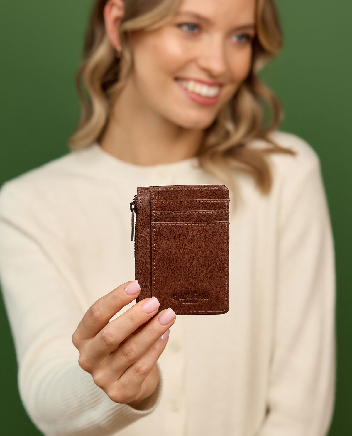 Porte-Monnaie Étui Cartes Portefeuille Femmes Hommes Marron Cuir