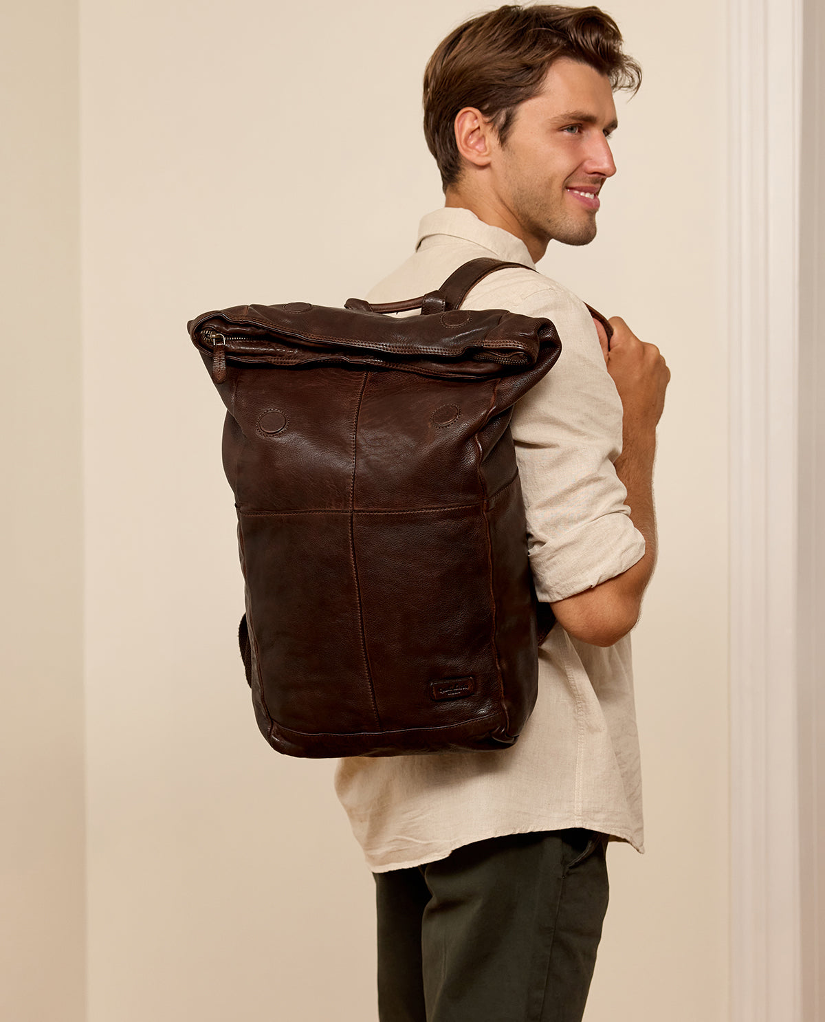 Sac à dos Rolltop Sac à dos en cuir Vintage Marron Cuir