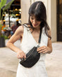 Le cuir de vache de haute qualité dans un look crocodile chic attire immédiatement l'attention, tandis que la technique sophistiquée de la sangle avec deux mousquetons offre une alternative exceptionnelle et stylée aux fermetures à clip classiques. Dans « Rosamonde », ton smartphone, portefeuille et clés trouvent une place sûre – et les regards admiratifs sont offerts gratuitement.