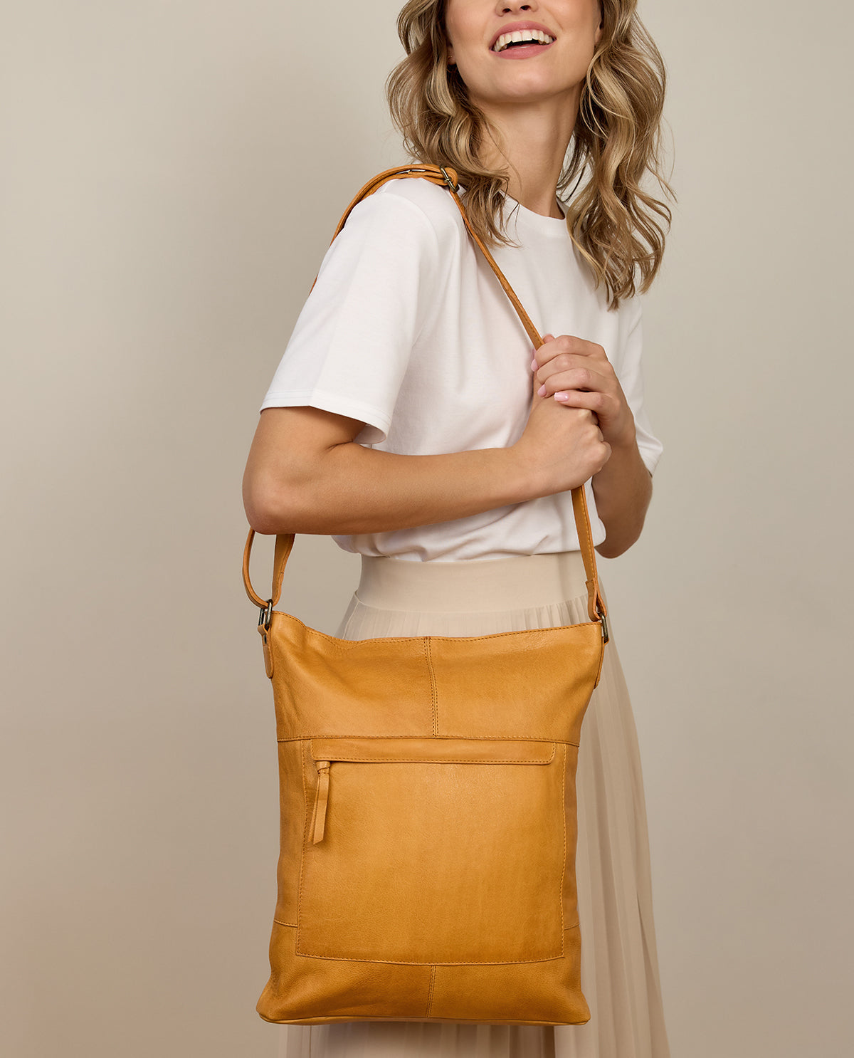 Le grand compartiment principal de ce sac bandoulière en cuir de vachette ultra doux de haute qualité, dans lequel vous pouvez facilement ranger des documents jusqu'à la taille A4, ainsi que les compartiments supplémentaires et la poche intérieure zippée vous offrent une vue d'ensemble optimale sur les essentiels de votre sac, sans avoir à fouiller longtemps. Et pour que tout ce que vous portez avec vous soit bien rangé et protégé, "Maola" se ferme avec une fermeture éclair robuste. De plus, une autre poche zippée est intégrée à l'avant du design, dans laquelle vous pouvez ranger des petits objets comme un smartphone ou des écouteurs à portée de main. La bandoulière réglable assure le confort et la flexibilité nécessaires, vous permettant de porter "Maola" soit comme un sac à bandoulière avec une courte sangle, soit comme un sac croisé classique.