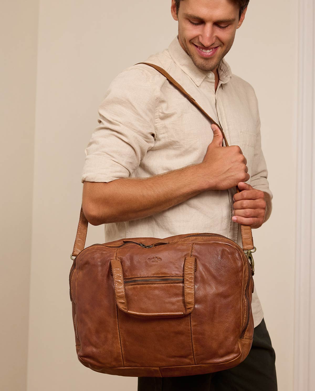 Notre Unitasche est fabriquée à partir de cuir de première qualité. Le matériau souple et résistant confère au sac non seulement un look vintage élégant, mais assure également une longue durée de vie. Chaque sac est fait à la main et se distingue par son grain unique et sa coloration. Le design intemporel s'accorde parfaitement à chaque tenue et occasion, que ce soit au bureau, lors de réunions ou en voyages d'affaires.