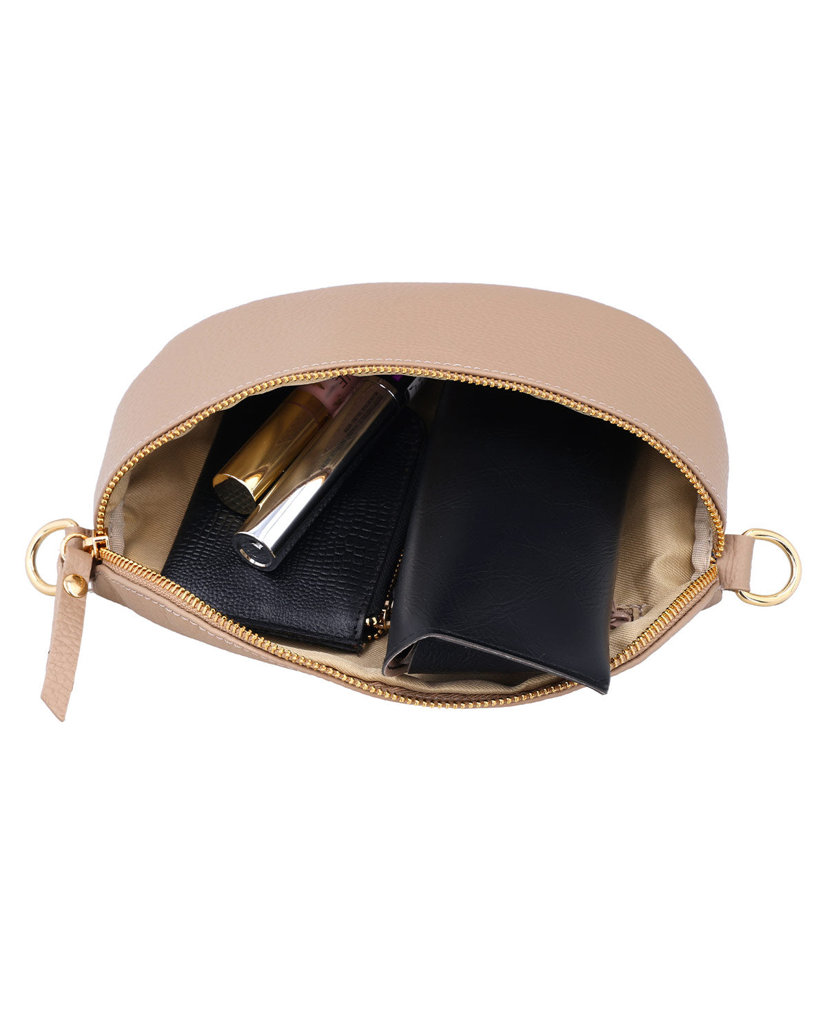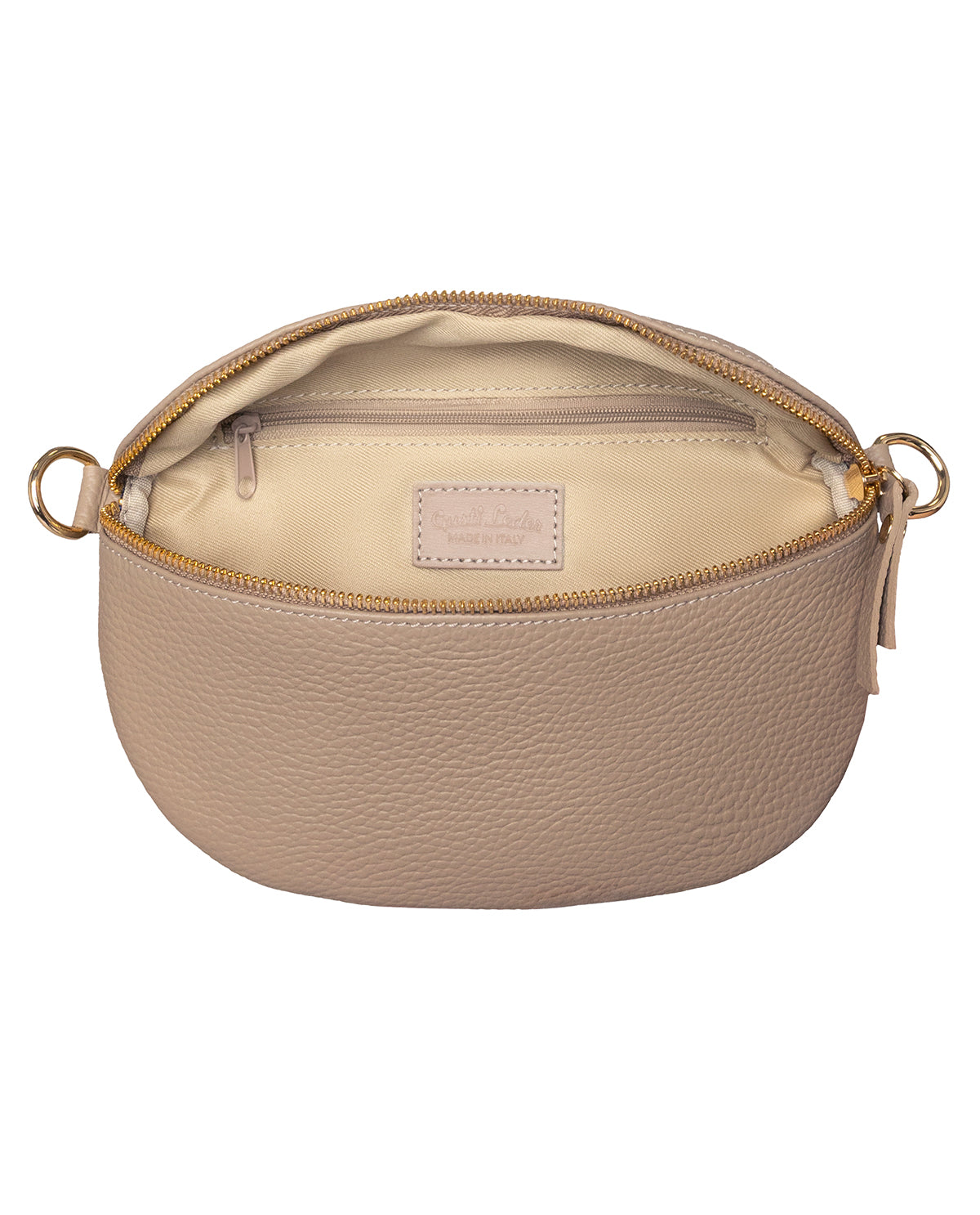 Le sac bandoulière "Brinja" séduit par son design élégant et sa grande fonctionnalité. Avec sa silhouette semi-circulaire marquante et sa fermeture éclair complète le long du bord supérieur, il offre non seulement suffisamment d'espace pour vos essentiels, mais aussi la sécurité pour tous vos effets personnels. Le cuir de haute qualité lui confère une apparence noble qui s'intègre parfaitement dans votre quotidien moderne. À l'intérieur, vous trouverez également le logo "Made in Italy" finement gravé, qui souligne de manière impressionnante l'origine et la qualité de ce sac.