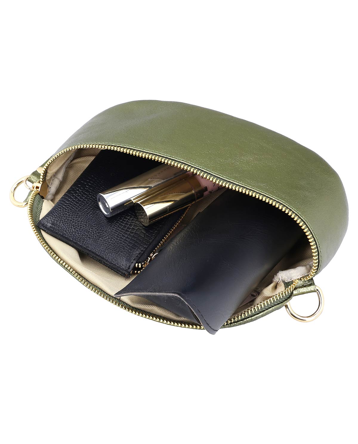 Sac Banane Ceinture Sac Bandoulière Femmes Vert Verni Cuir - Made in Italy