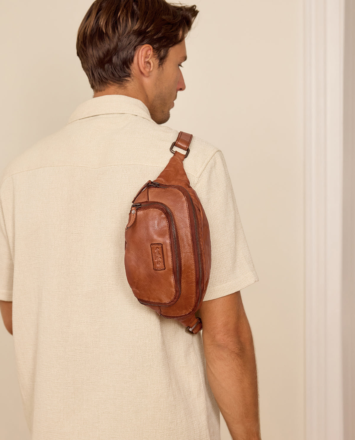 Sac banane Sac porté à la taille ou à la poitrine Sac ceinture Marron Cuir