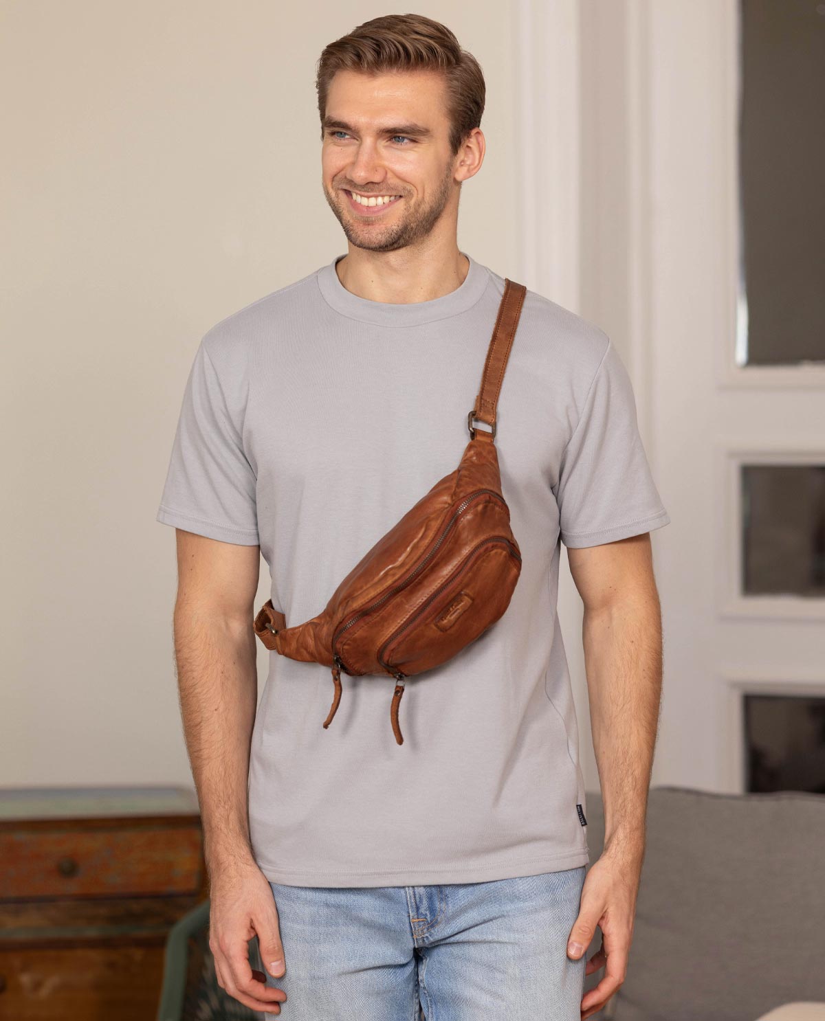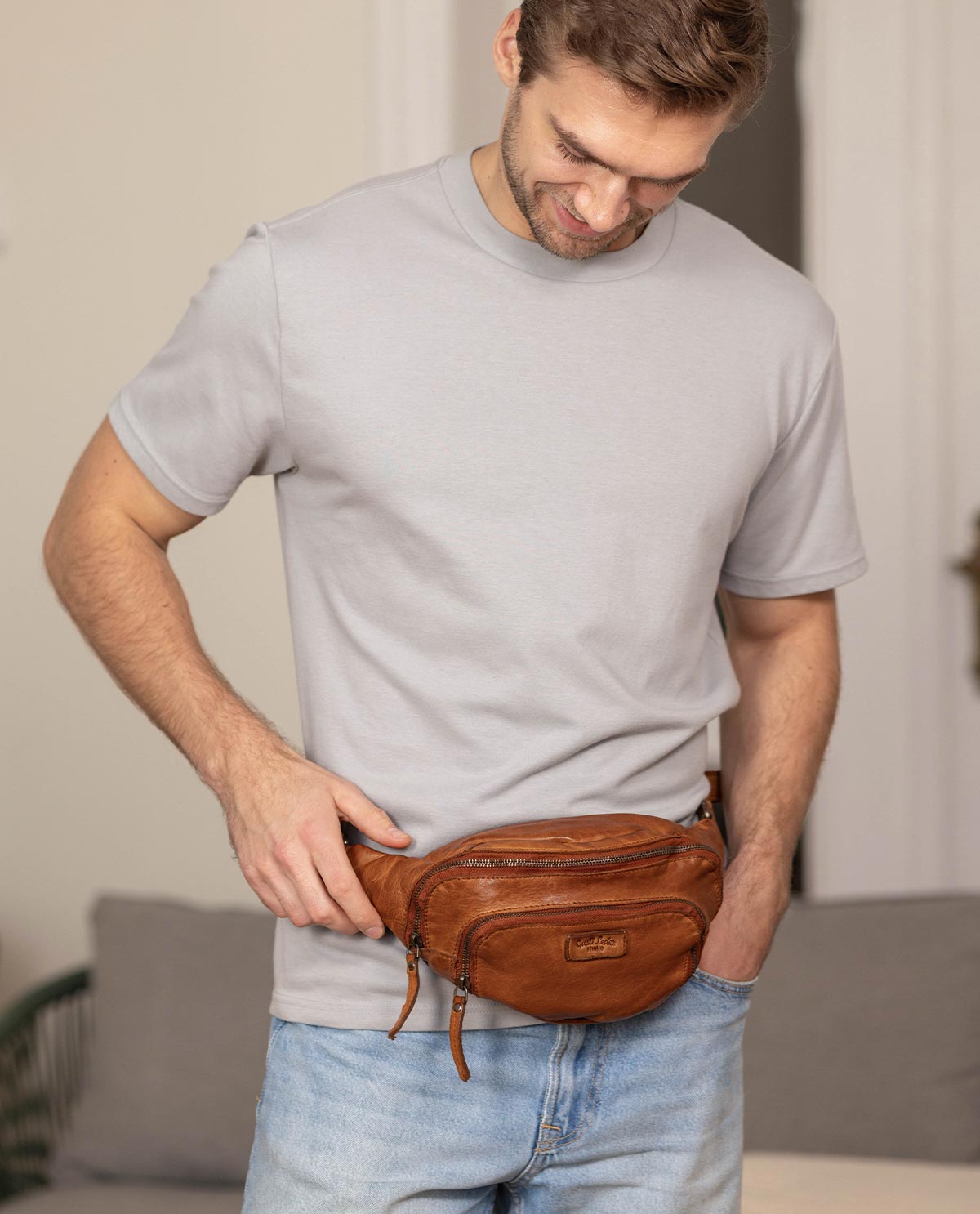 Tu cherches encore un sac banane cool pour la prochaine saison des festivals, un moyen de rangement pratique pour les snacks sur la piste ou simplement un petit sac pour garder tes affaires ensemble ? Alors tu es au bon endroit avec "Sverre" ! Le look vintage cool fait de ce sac en cuir de vachette robuste quelque chose de vraiment spécial, tu seras toujours bien stylé. Dans le grand compartiment principal, tu peux ranger généreusement tes affaires. À l avant, tu trouveras encore deux petites poches supplémentaires, que tu peux également fermer avec une fermeture éclair. Le Coachella peut arriver ! Mais même en hiver, il fait bonne figure lors des concerts et emporte sans effort portefeuille, clés et smartphone pour toi ! Ainsi, tu peux danser sans souci et profiter de la musique, tes affaires sont en sécurité.