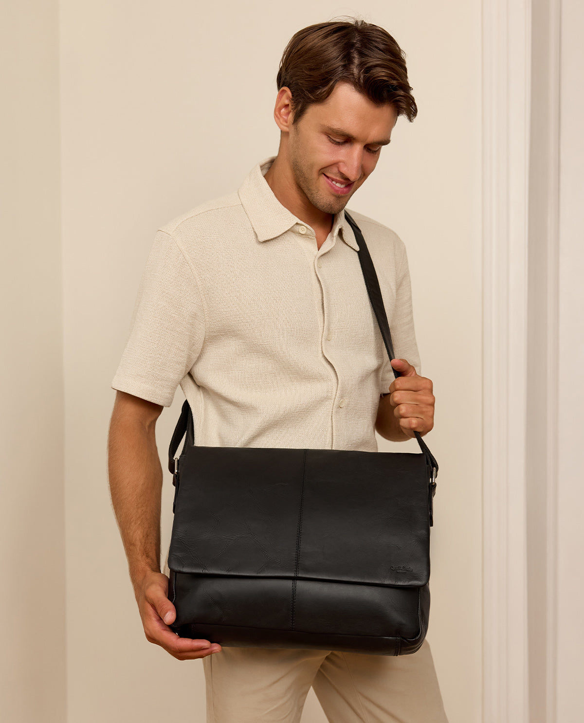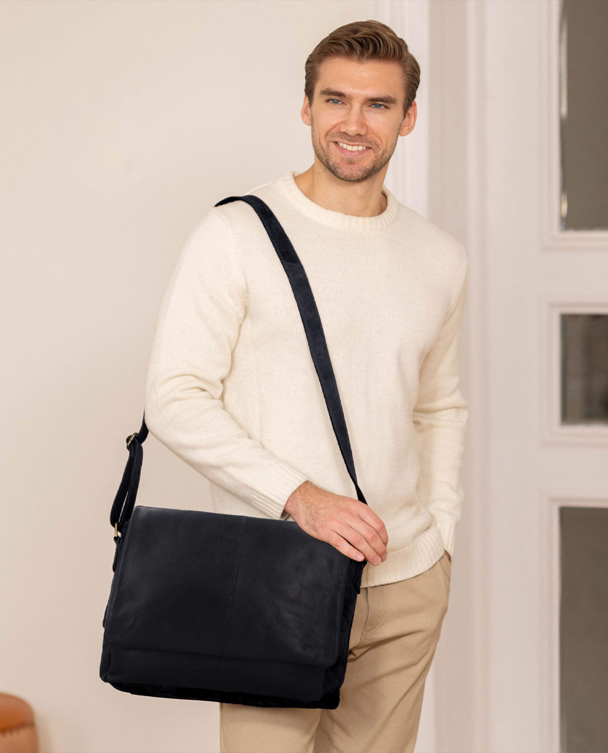 Sac bandoulière en cuir pour homme Vintage Noir Cuir