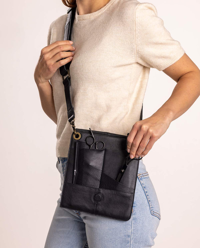 Votre compagnon élégant pour le salon – le sac de coiffeur "Moana" en cuir noir