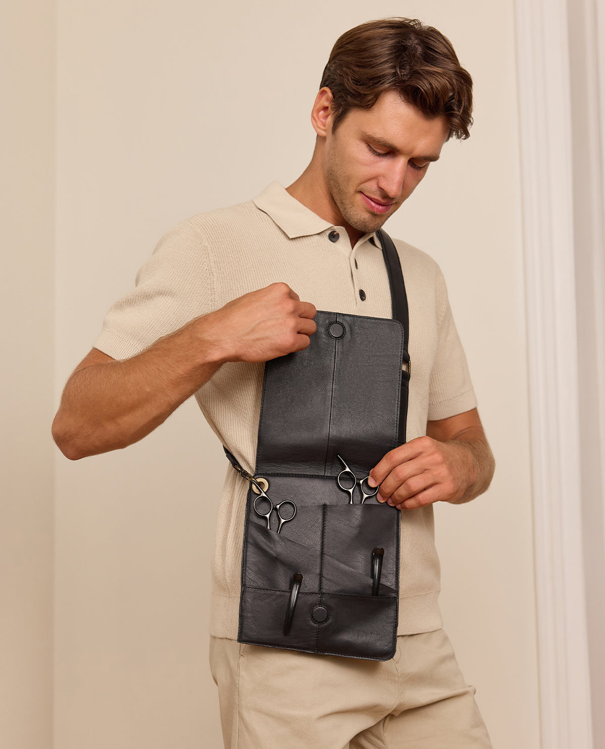 Sac De Coiffeur Cuir Outils Coiffeur Sac Styliste Noir Cuir