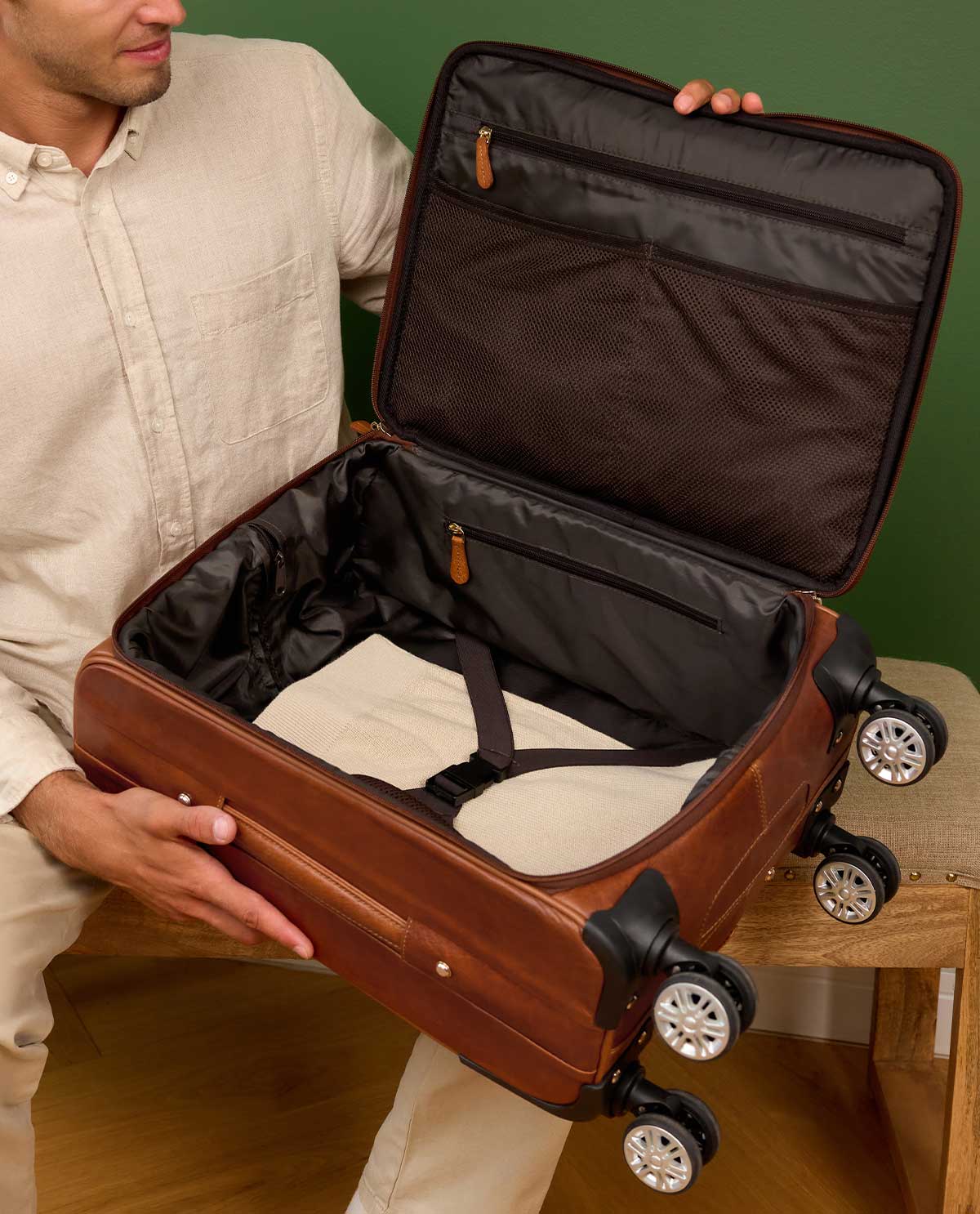 Der Reisetrolley „Asia“ vereint Stil, Komfort und Funktionalität auf unverwechselbare Weise. Sein tiefbraunes Leder entwickelt mit der Zeit eine einzigartige Patina, die ihm besonderen Charakter verleiht. Inspiriert durch Berlin, wurde dieser Trolley für anspruchsvolle Reisende wie Dich konzipiert. Ob Geschäftsreise, Wochenendausflug oder längerer Urlaub – er bietet Dir großzügigen Stauraum und einen luxuriösen, dennoch unaufdringlichen Look.