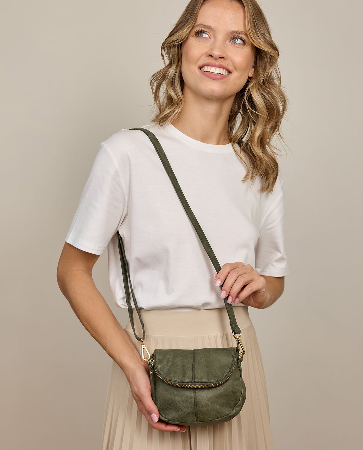 Handtasche Umhängetasche Schultertasche Damen Khaki Leder