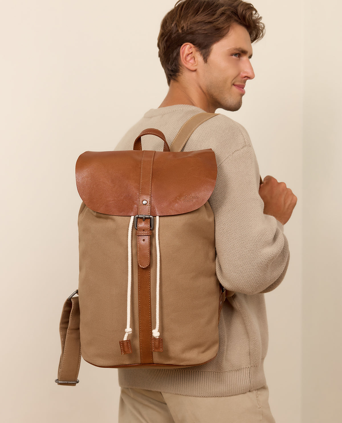 Rucksack Cityrucksack Laptoptasche Laptoprucksack Lederrucksack Beige Canvas & Leder
