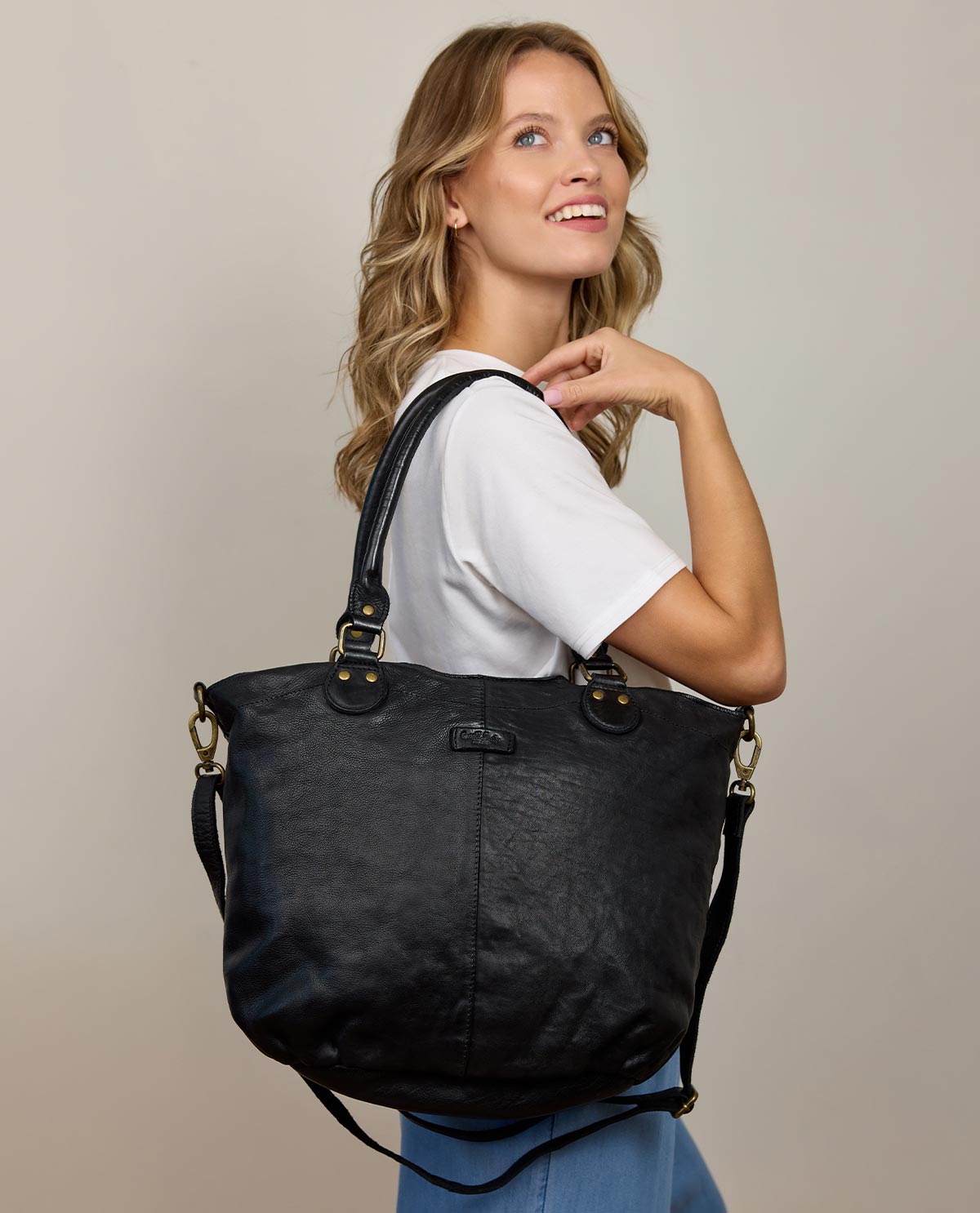 Handtasche Umhängetasche Shopper Ledertasche Damen Schwarz Leder