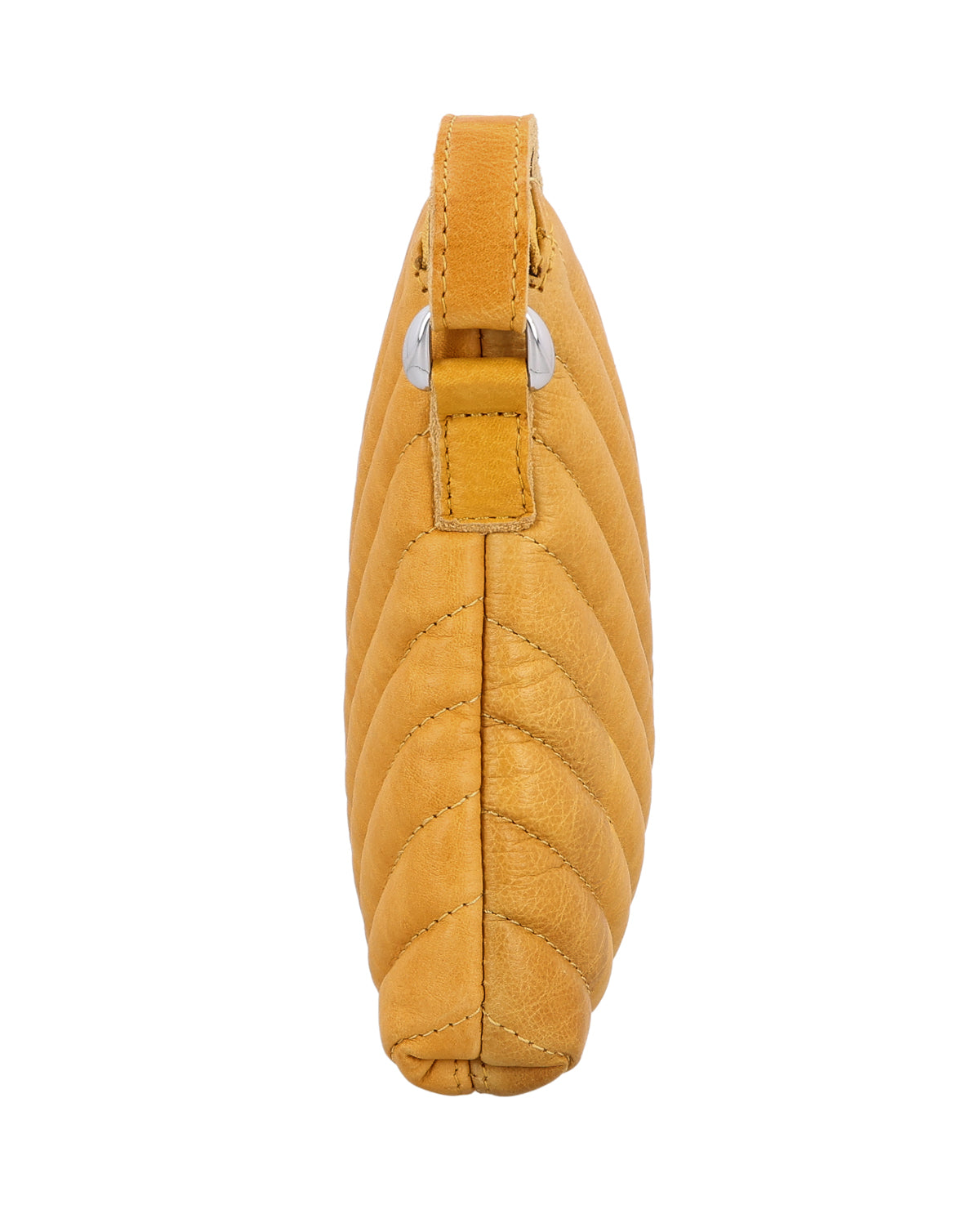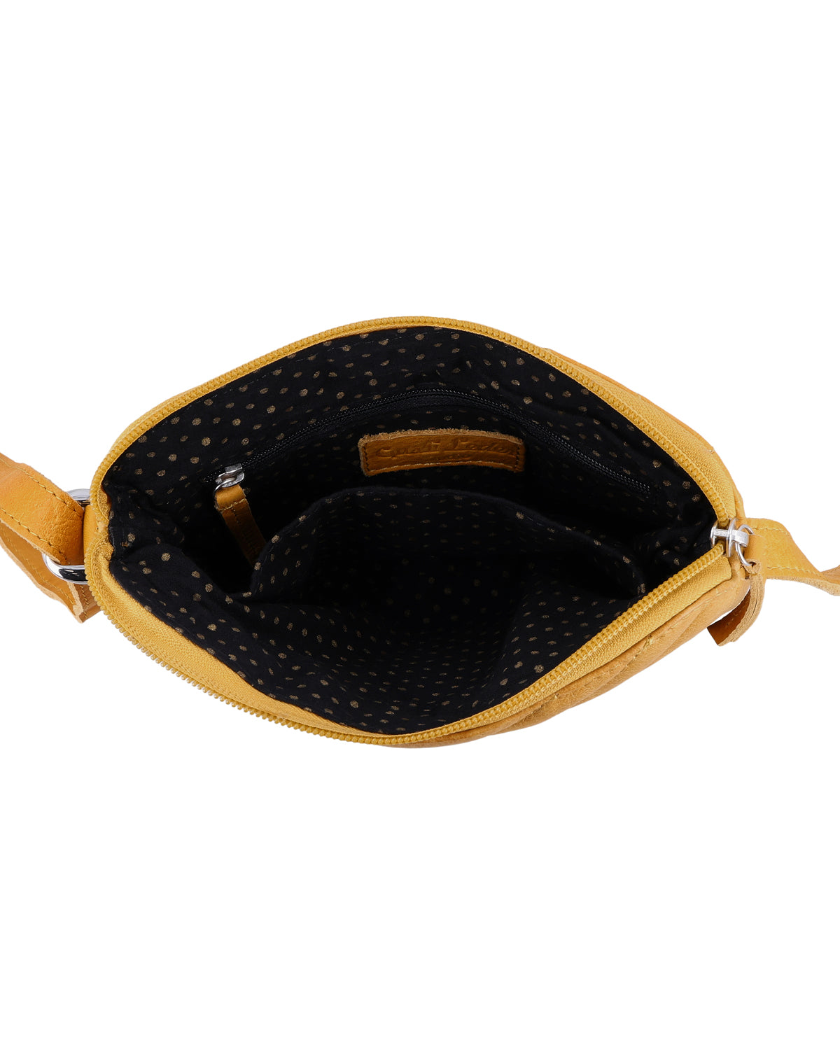 Die kleine Handtasche „Aline“ ist eine Lederhandtasche für Damen, die Farbe und Struktur bewusst in ihren Alltag integrieren möchten. Das gelbe Leder wirkt lebendig und wird durch das markante Muster auf der Oberfläche zu einem besonderen Hingucker, der Deinem Outfit sofort Leichtigkeit verleiht. Trotz ihres kompakten Formats bietet „Aline“ dank Reißverschluss-Hauptfach und verstellbarem Schulterriemen genau die Flexibilität, die Du im Alltag brauchst. Diese Umhängetasche aus Leder begleitet Dich entspannt durch den Tag und setzt dabei ein klares, positives Stilstatement.