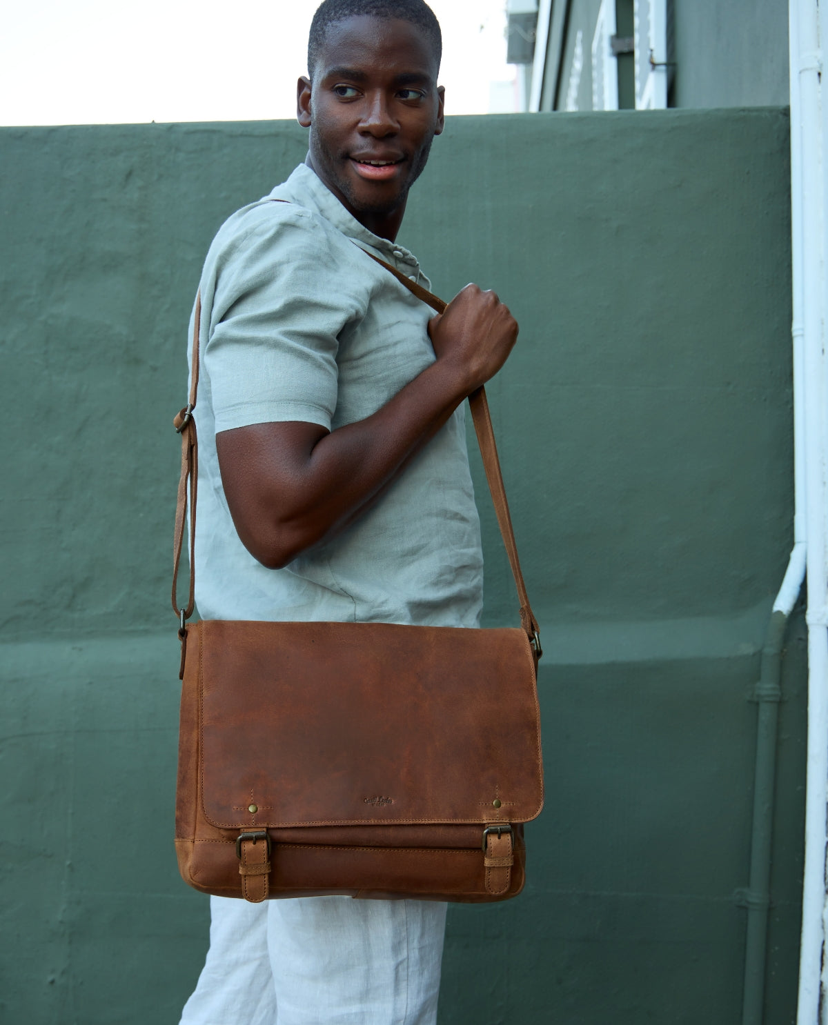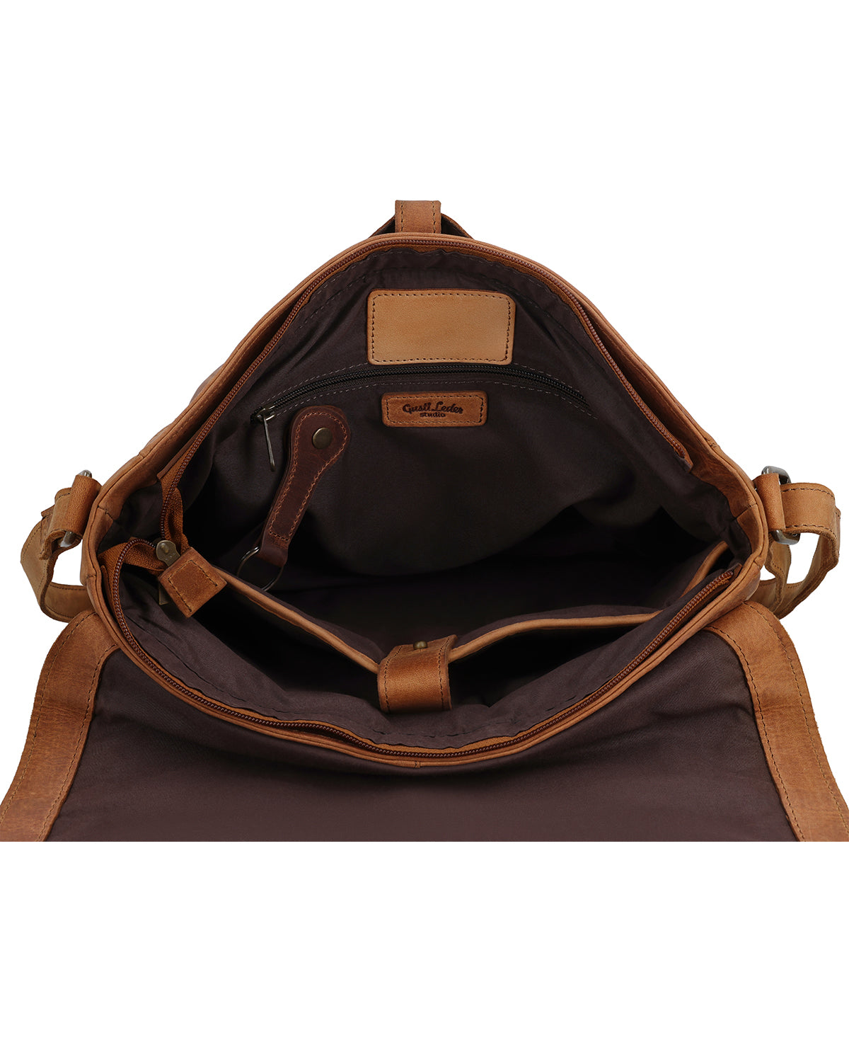 Auch unterwegs zeigt sich „Brin“ angenehm anpassungsfähig. Der verstellbare Schultergurt sorgt für komfortables Tragen im Alltag, während der zusätzliche Gurt für Fahrradfahrten die Tasche stabil am Körper hält, wenn Du in Bewegung bist. Für Reisen ist ein Koffergurt mit Druckknopf integriert, sodass sich „Brin“ bequem am Trolley befestigen lässt. Ein Reißverschlussfach außen gibt Dir schnellen Zugriff auf Dinge, die sofort zur Hand sein sollen, ohne dass Du jedes Mal ins Hauptfach greifen musst. Im Inneren ergänzt ein Gravur-Patch die Tasche um eine persönliche Note. So wird „Brin“ zu einer Businesstasche aus Leder, die Alltag, Mobilität und Organisation auf eine ruhige, durchdachte Weise zusammenbringt.