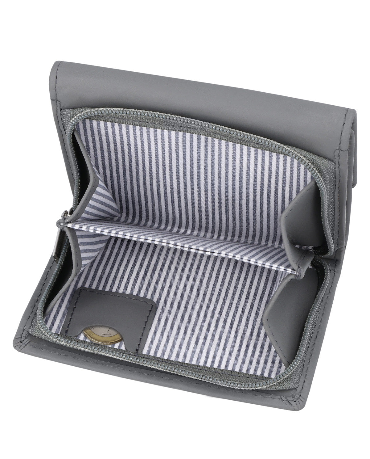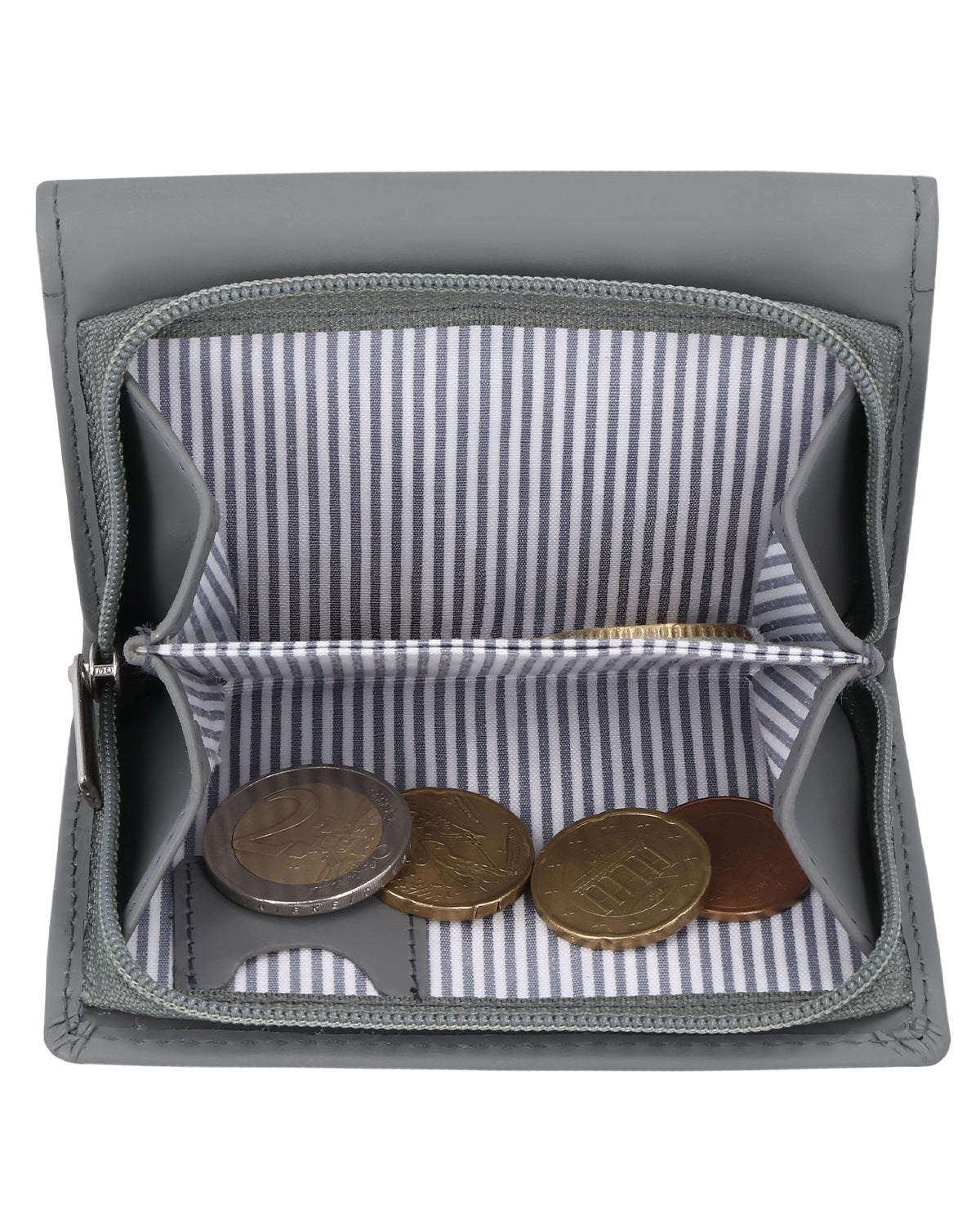 "August" überzeugt mit Handlichkeit, aber auch ausreichend Stauraum. So kannst du mindestens sechs Karten unterbringen. Außerdem hat "August" noch ein transparentes Steckfach für deinen Ausweis oder deine Monatskarte. Das Kleingeldfach ist zweigeteilt und auch deine Scheine finden hier ihren Platz. Besonders praktisch ist ein separates Fach für eine einzelne Münze – z. B. für den Einkaufswagen oder andere kleine Situationen unterwegs. Das gestreifte Innenfutter vollendet das Design. Gesichert wird "August" durch Reißverschluss und Druckknopf. So hast du immer alles bei dir, was du brauchst. Ein echter Sorglosmacher eben!