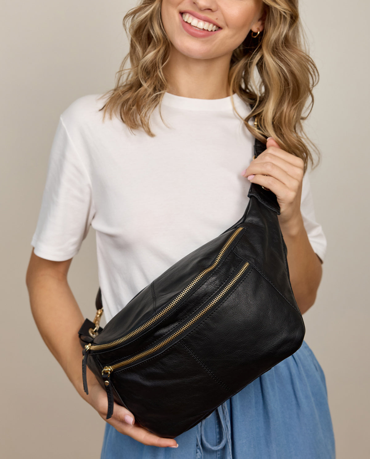 Freya“ ist eine echte Platzheldin unter den Bauchtaschenund bietet durch ihr Haupt- und Nebenfach viel Platz für Deine wichtigsten Utensilien. Aus hochwertig gegerbten Schafsleder lässt sich „Freya“ nicht nur angenehm anfassen – die beiden großen Reißverschlussfächer bieten genügend Platz für Handy Schlüssel, Geldbeutel, A5 Notizbuch und alles was du noch an Souvenirs vom nächsten Festival noch mitnehmen willst. Sie besticht im angesagten Vintage-Look und mit ihrer natürlichen Ausstrahlung. Du möchtest „Freya“ mit einer Widmung versehen? Kein Problem! Im Inneren wird dafür extra ein Lederpatch angebracht, wo du einen Namen oder einen kurzen Text eingravieren lassen kannst. Probier es doch mal aus!
