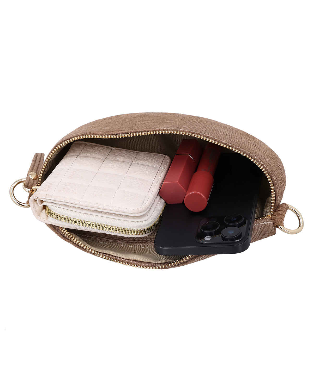 Im Inneren sorgt ein Reißverschlussfach dafür, dass kleine Essentials wie Karten, Schlüssel oder Lippenpflege sicher verstaut sind und nicht verrutschen. Die kompakte Form bietet ausreichend Platz für alles, was Du unterwegs brauchst – ohne Dich zu beschweren. Ob im Alltag, auf Reisen oder beim Stadtbummel: "Brinja" vereint Funktionalität und Eleganz auf harmonische Weise und begleitet Dich stilsicher durch jeden Moment.