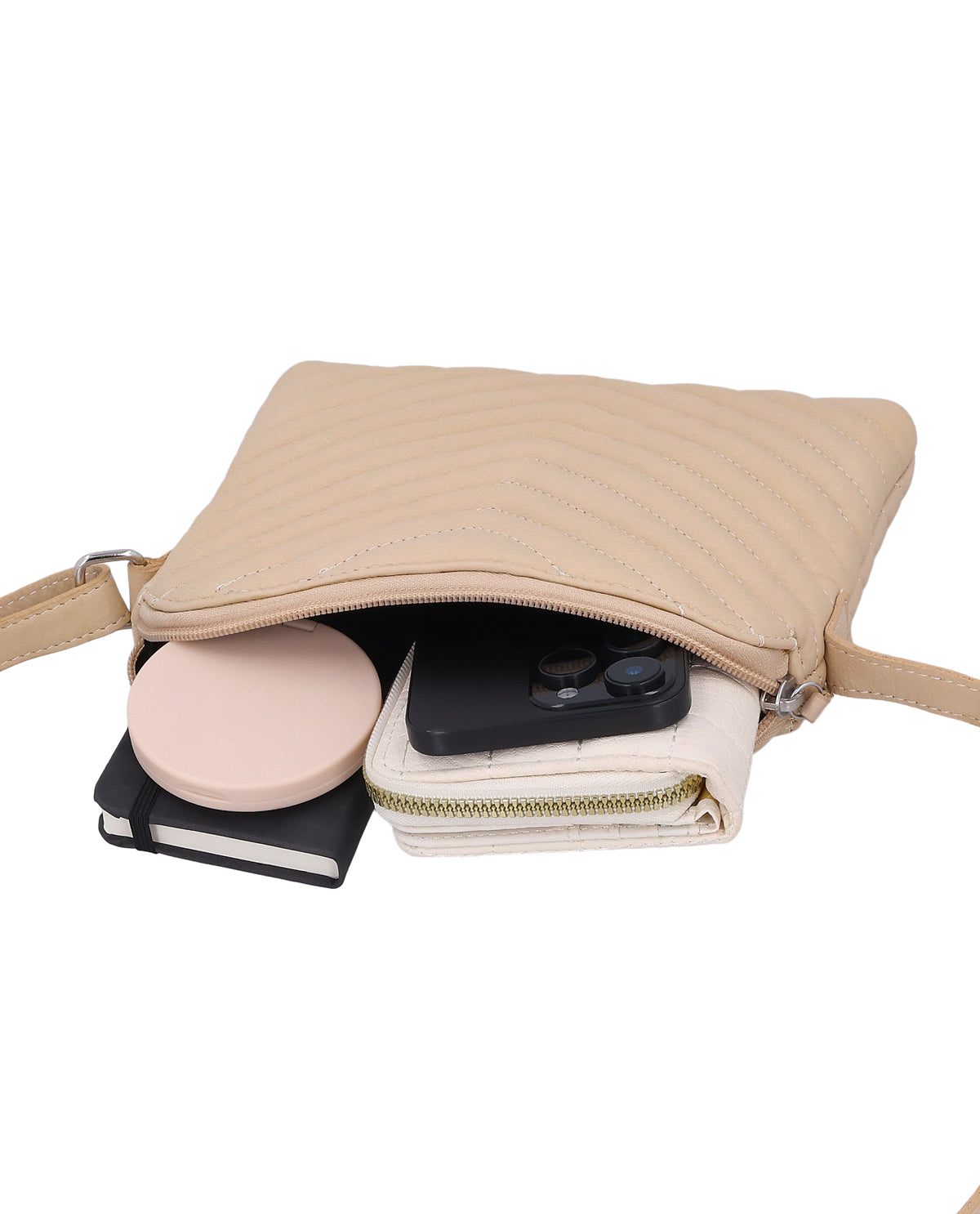 Die kleine Handtasche „Aline“ ist eine Lederhandtasche für Damen, die Farbe und Struktur bewusst in ihren Alltag integrieren möchten. Das beige Leder wirkt lebendig und wird durch das markante Muster auf der Oberfläche zu einem besonderen Hingucker, der Deinem Outfit sofort Leichtigkeit verleiht. Trotz ihres kompakten Formats bietet „Aline“ dank Reißverschluss-Hauptfach und verstellbarem Schulterriemen genau die Flexibilität, die Du im Alltag brauchst. Diese Umhängetasche aus Leder begleitet Dich entspannt durch den Tag und setzt dabei ein klares, positives Stilstatement.