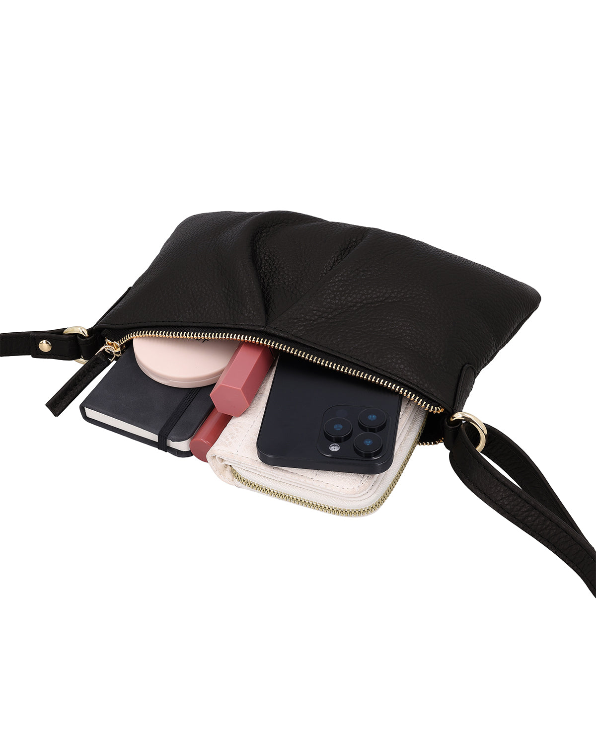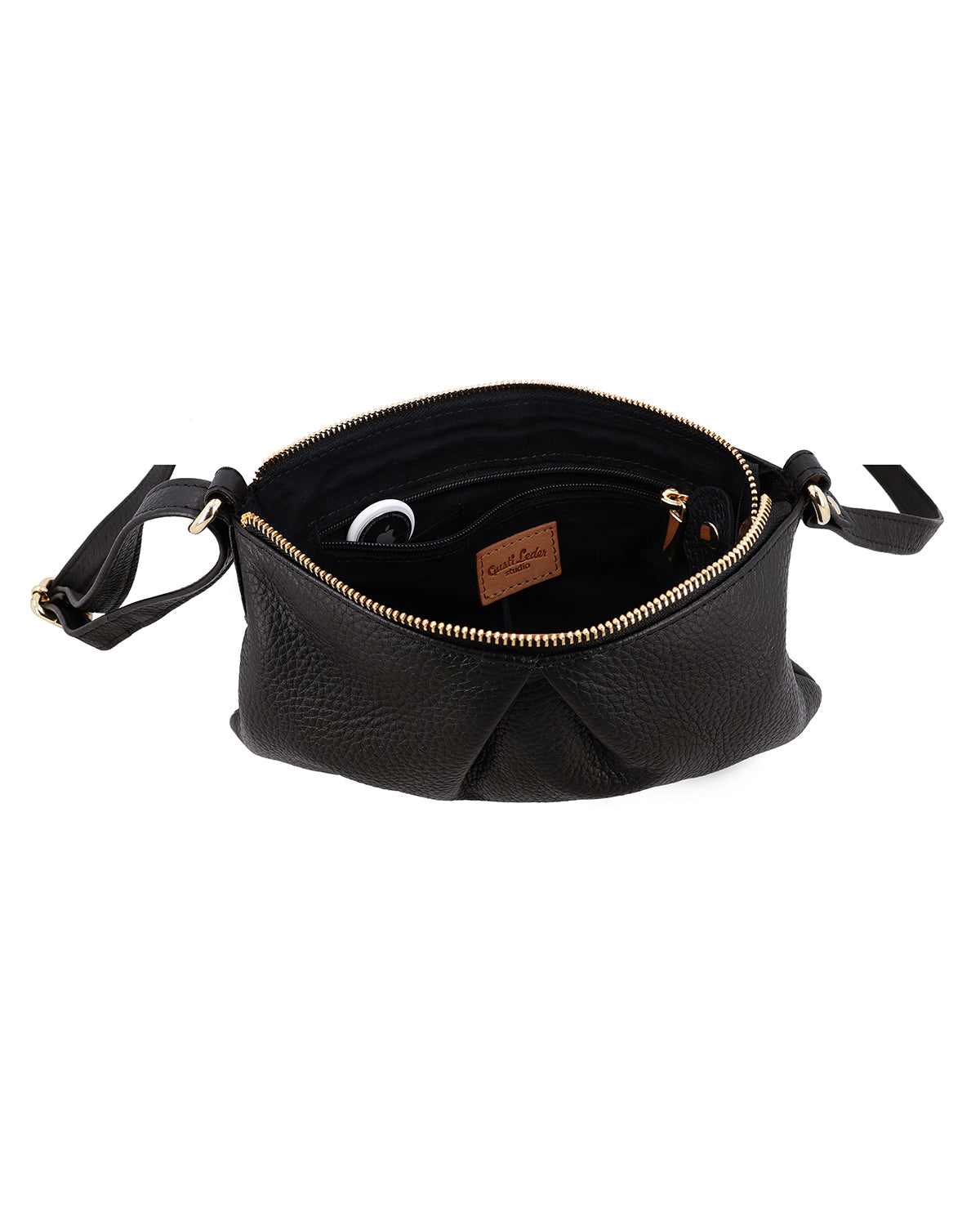 Die kleine Handtasche „Aurelie“ ist eine schwarze Lederhandtasche für Damen, die klare Linien mit durchdachter Funktion verbindet. Für zusätzliche Sicherheit sorgt ein verstecktes AirTag-Fach, während ein abnehmbarer Schlüsselanhänger Deine wichtigsten Essentials griffbereit hält. Das Hauptfach mit Metallreißverschluss schützt den Inhalt zuverlässig und unterstreicht die hochwertige Ausstrahlung. Dank des verstellbaren Schulterriemens lässt sich „Aurelie“ flexibel tragen – ob über der Schulter oder crossbody.