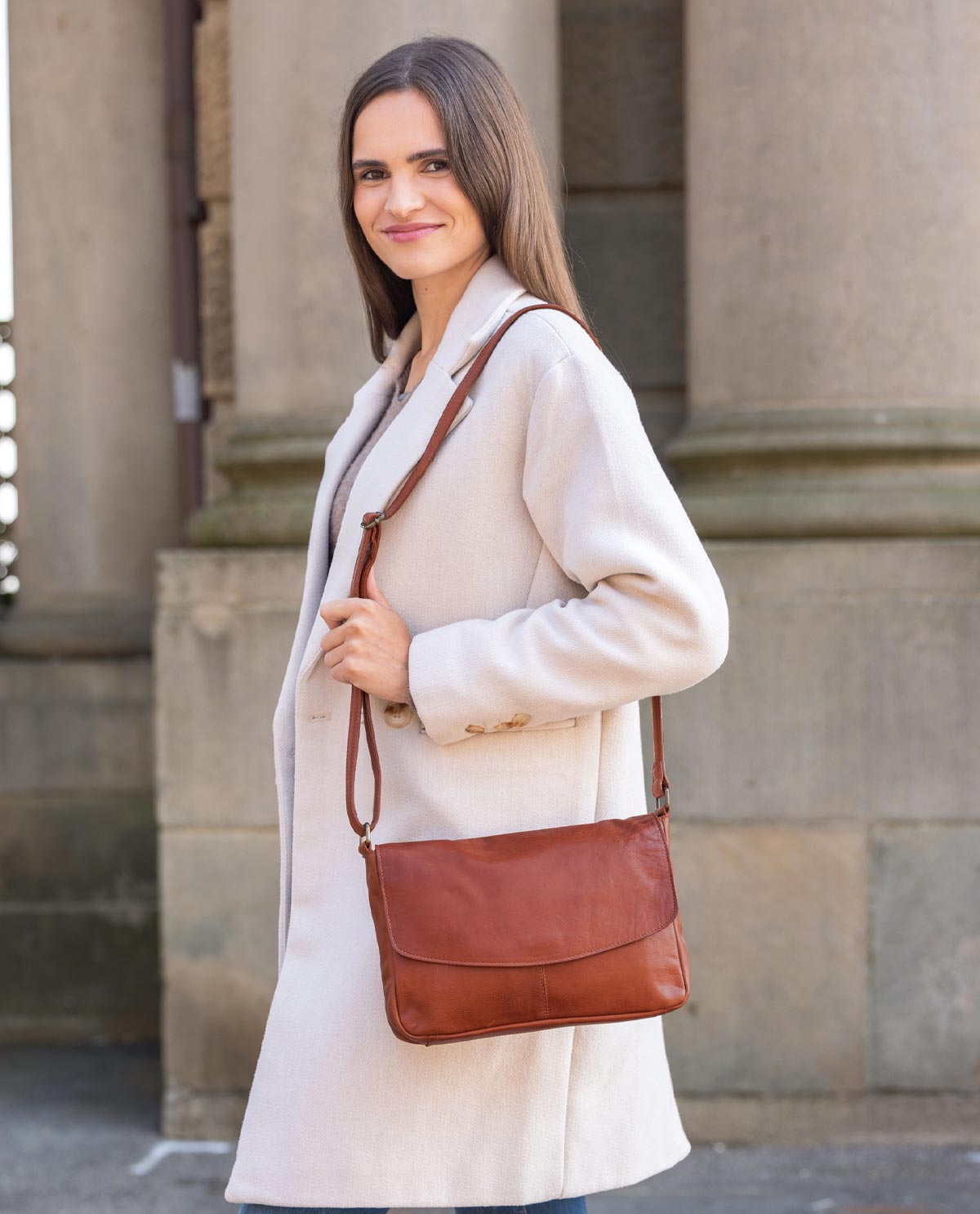 Du suchst nach einer kleinen Umhängetasche, die dich stiltechnisch nicht hängen lässt? Genauso aber im Alltag jedes Outfit aufwertet und angenehm in der Hand liegt? Dann sag Hi zu "Maisie"! Ihre schmale Form macht sie zur idealen Umhängetasche – ob zum Cocktail mit den Freunden oder als Alltagstasche beim Bummeln! Inspiriert durch den Berliner Großstadt Flair, kombiniert "Maisie" urbanen Chic mit praktischer Funktionalität. Durch das weiche, grobnarbige Rindsleder wirst du sie garantiert nicht mehr missen wollen!