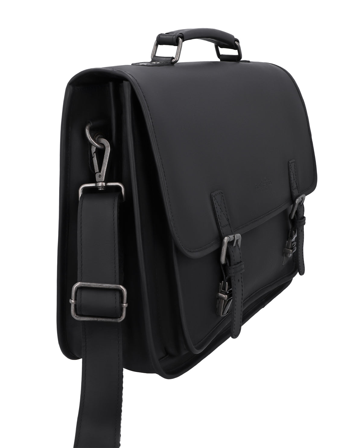 Die Aktentasche „Elmar“ ist eine Businesstasche aus Leder für Damen und Herren, die ihren Arbeitsalltag klar organisiert und zugleich flexibel gestalten möchten. In klassischem Schwarz gehalten, wirkt sie ruhig, professionell und zeitlos. Zwei Tragevarianten – dank zusätzlichem Schultergurt – ermöglichen Dir, „Elmar“ je nach Situation elegant in der Hand oder bequem über der Schulter zu tragen. Ein integriertes Laptopfach schützt Dein Arbeitsgerät zuverlässig und macht diese Ledertasche zum idealen Begleiter für Büro, Termine oder Geschäftsreisen.