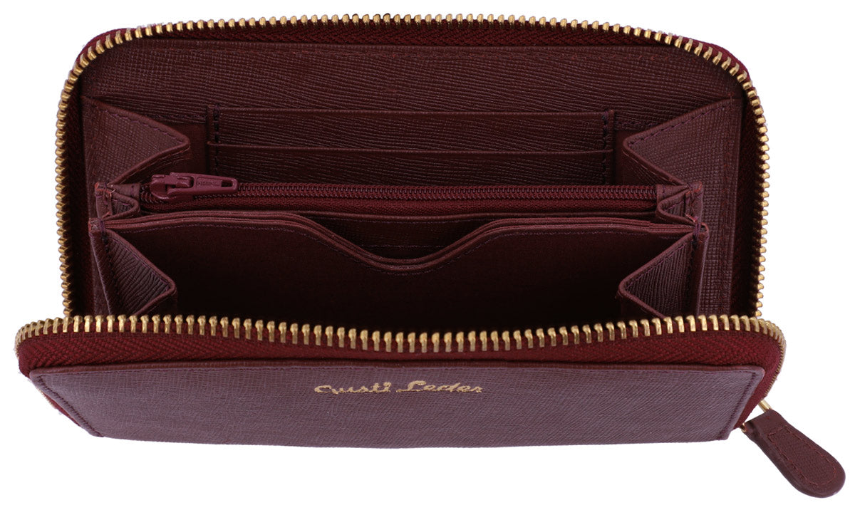 Das stilvolle Lederportemonnaie „Thala“ besticht gleich auf den ersten Blick durch sein modernes Design, auf den zweiten Blick sodann wegen der wohldurchdachten Aufteilung der Fächer. Immerhin bietet „Thala“ Steckplätze für bis zu sechs Karten, zwei Fächer für Geldscheine, ein separates Münzfach mit Reißverschluss und ein zusätzliches Zwischenfach für persönliche Habseligkeiten, Fotos, Talismane o.ä. Ein Rundum Reißverschluss verhindert, dass deine Habseligkeiten ungehindert rauspurzeln können und rundet sogleich die Gestaltung von "Thala" ab.