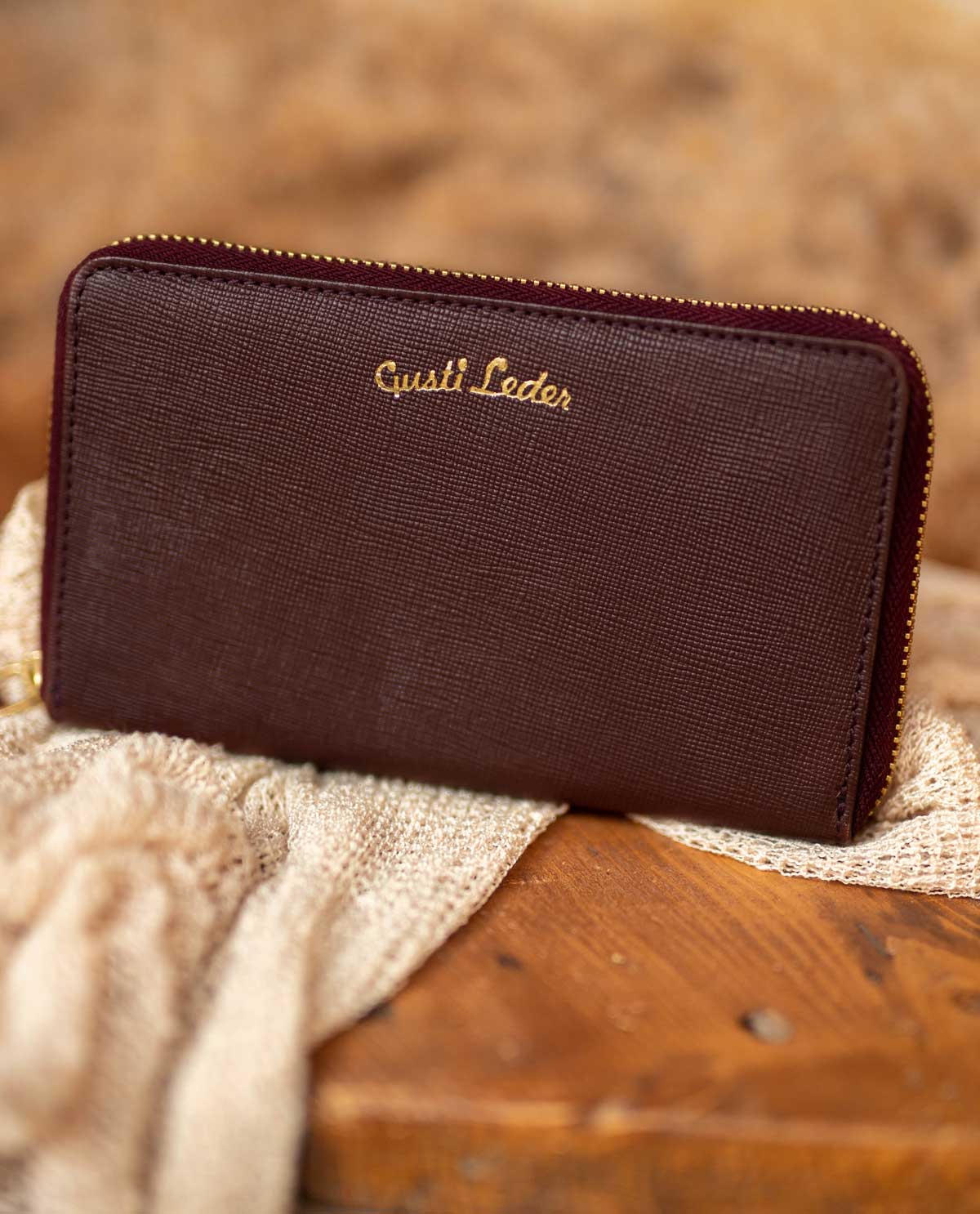 Die Verwendung von Saffiano-Leder verleihen „Thala“ dabei einen Hauch von vornehm-zurückhaltender Eleganz längst vergangener Zeiten und kommt in verschiedenen Farben daher. Das Gusti Logo ziert die Vorderseite und bildet ist das I- Tüpfelchen in Sachen Design. Da ist sicher für jeden Geschmack etwas dabei. Zusätzlich zeigt "Thala" mit ihrer überaus stylischen Optik, das Funktionalität und Stilsicherheit absolut Hand in Hand gehen! Ab in die Tasche es kann losgehen – mit Brieftasche "Thala"!