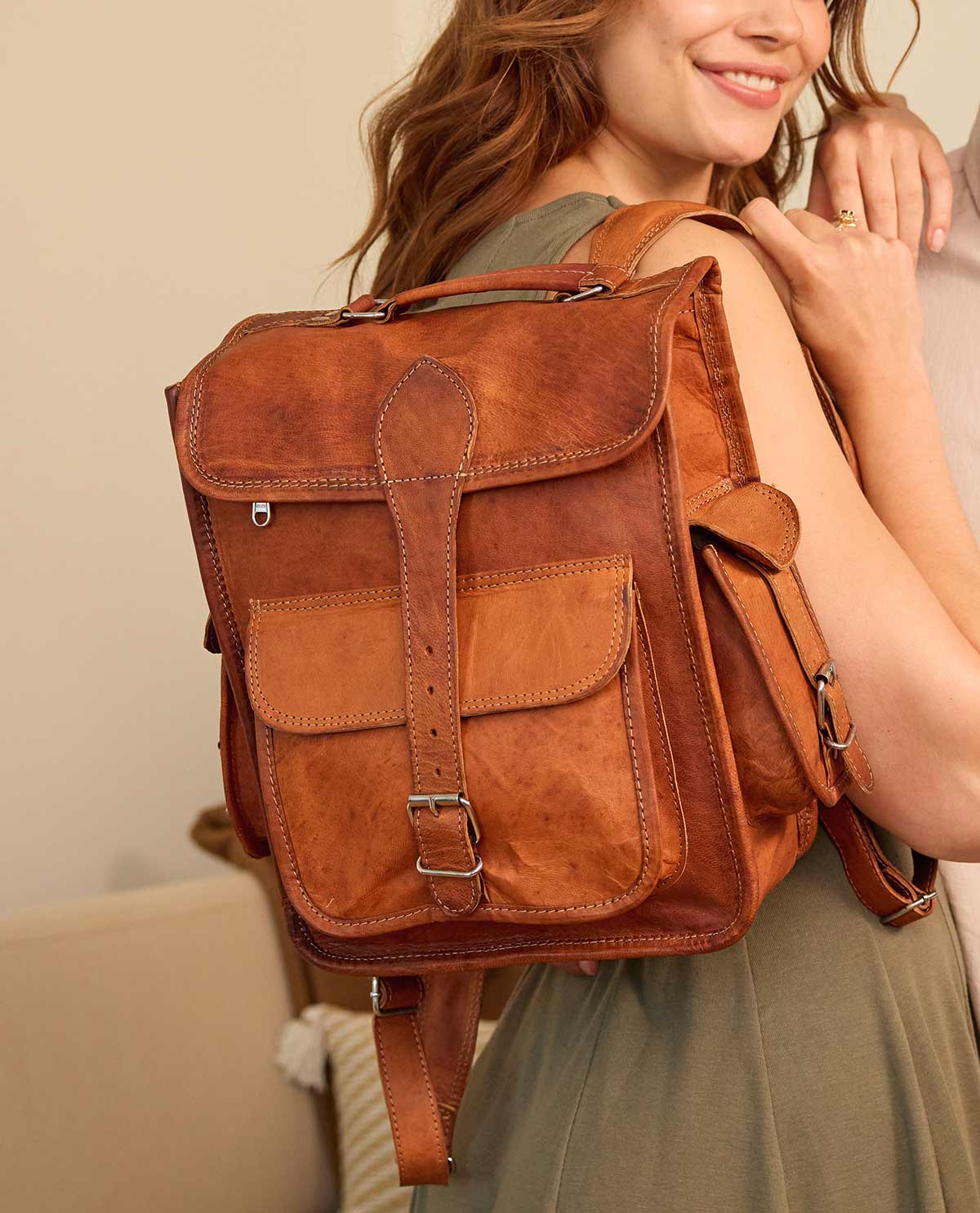 Rucksack Lederrucksack Berliner Großstadt Flair Damen Herren Vintage Braun Leder