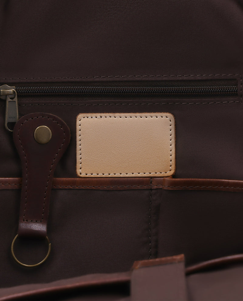 Mit den verstellbaren Schulterriemen passt sich "Klaas" Deinem Tragekomfort perfekt an. Der integrierte Trolley-Strap macht Reisen besonders angenehm, da Du den Rucksack einfach auf Deinem Koffer befestigen kannst. Außen findest Du eine weitere Reißverschlusstasche sowie einen praktischen Lederhaken für schnellen Zugriff auf Kleinigkeiten. Im Inneren setzt das eingearbeitete Gravurpatch einen persönlichen Akzent und macht "Klaas" zu etwas ganz Besonderem. Ob für Arbeit, Uni oder Freizeit – dieser Rucksack begleitet Dich zuverlässig und stilvoll durch jeden Tag.