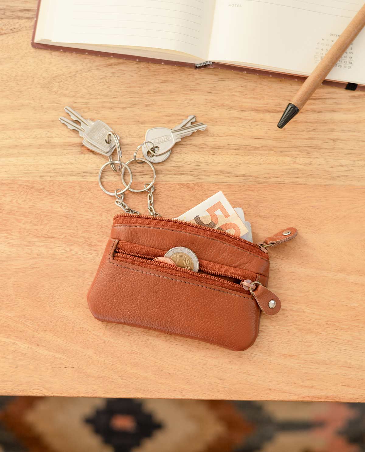 Das klassische Design gemixt mit dem robustem, aber weichem Rindsleder macht "Anea" zum zeitlos schönen Alltagsbegleiter! Diese praktische Schlüsseltasche wird dein neuer bester Freund sein. Aneas integrierte Schlüsselkette hat deine Schlüssel fest im Griff, sodass noch genügend Platz für dein Kleingeld bleibt! In den zwei großzügigen Taschen kannst du deine Kreditkarte, Gelscheine und Münzen transportieren. Beide Taschen sind durch Reißverschlüsse gesichert, sodass alles an seinem Platz bleibt. Perfekt für alle, die gerne wissen, wo sich ihre Schlüssel befinden und nicht wollen, dass diese lose in der Tasche herumfliegen und Handy oder den Buchrücken des Lieblingsbuches verkratzen. Die elegante kastanienrote Farbe lässt die Herzen alles Ästheten höher schlagen. Mit "Anea" hast du immer alle deine Habseligkeiten im Griff!