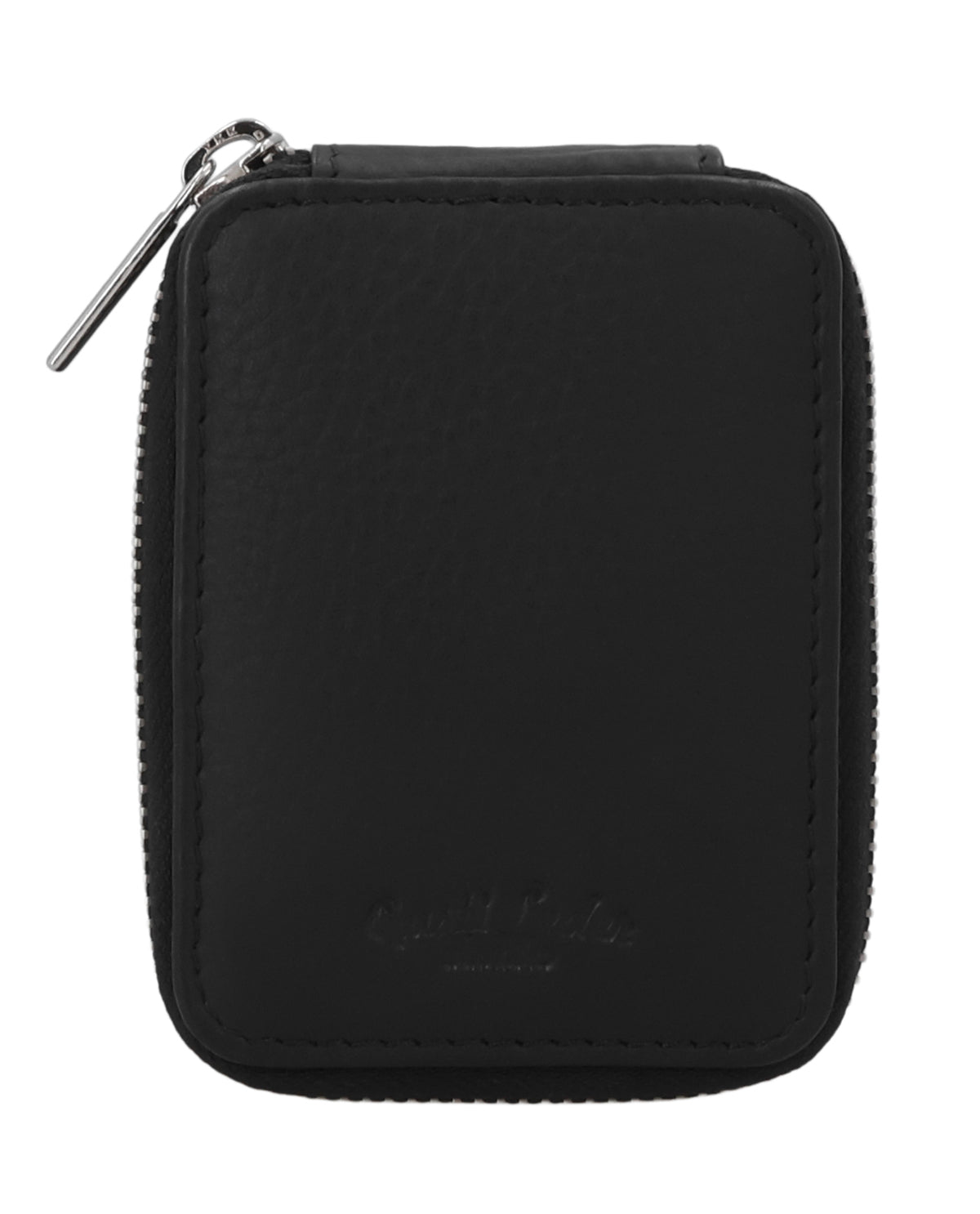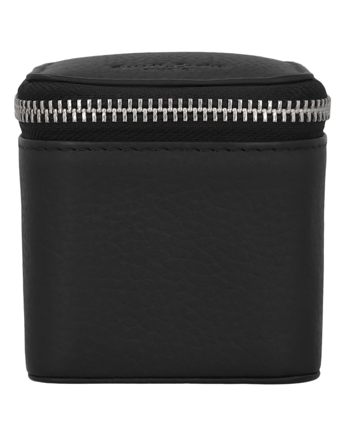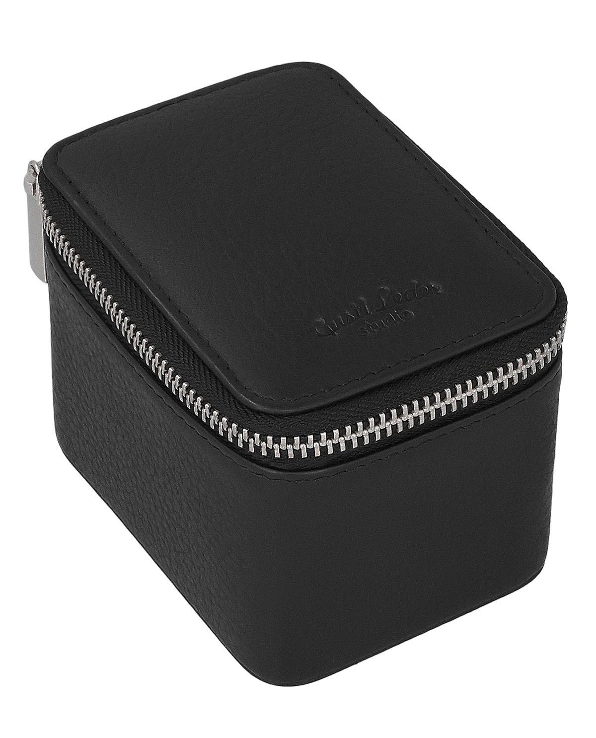 Die Uhren-Schatulle „Hali“ ist ein schwarzes Lederetui für Herren, das Deine Uhr stilvoll und sicher aufbewahrt. Das klare, maskuline Design wirkt reduziert und hochwertig zugleich. Ein Metallreißverschluss verschließt die Schatulle zuverlässig und schützt den Inhalt unterwegs oder auf Reisen. Auf der Oberseite unterstreicht das Gusti-Logo den charakteristischen Markenauftritt, ohne aufdringlich zu wirken.