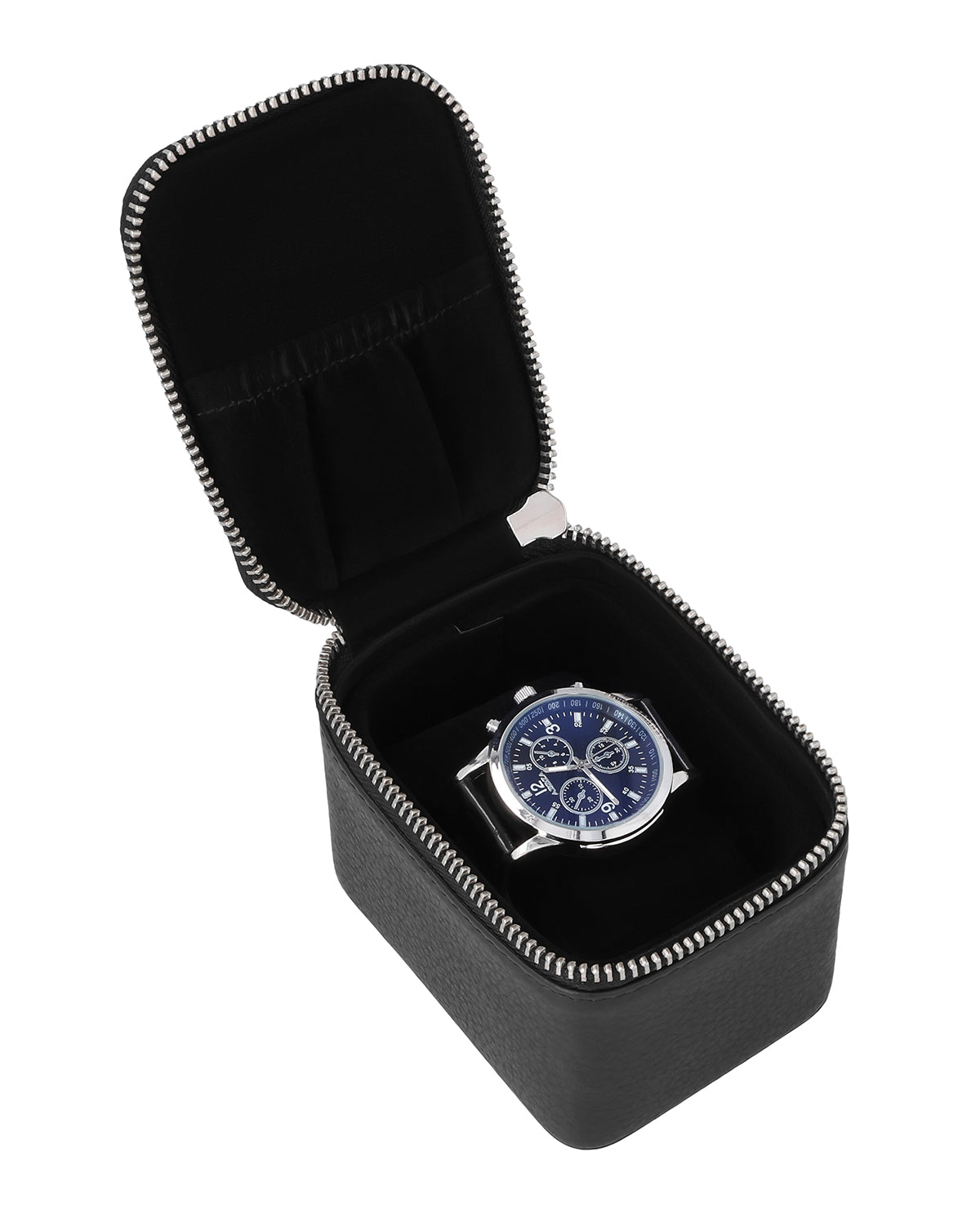 Uhren-Schatulle mit Samtkissen und Metallreißverschluss