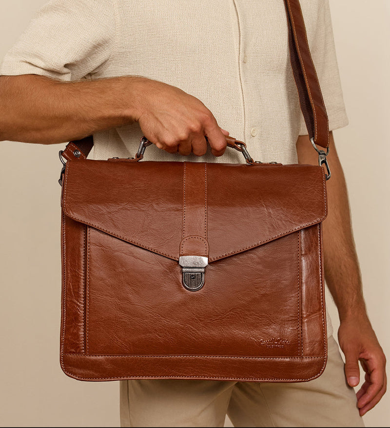 Restez organisé et élégant au bureau avec notre sac vintage "Élie« . Elle a un Sujet principal et plusieurs poches intérieures, qui sont suffisamment spacieux pour garder vos affaires en sécurité et organisées. Notre sac de travail élégant et hautement fonctionnel « Elijah » est l’accessoire parfait pour compléter votre look professionnel moderne.