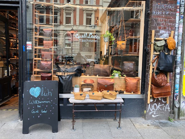 Dans notre magasin pittoresque de la Susannenstraße dans le quartier branché de Schanzenviertel, vous attend une grande sélection de produits en cuir uniques. Du portefeuille à la banane en passant par le sac à dos urbain, nous avons tout ce que votre cœur désire. Venez, sentez le parfum des articles en cuir et convainquez-vous de nos produits. Nous nous réjouissons de votre visite! Votre équipe Gusti Hambourg