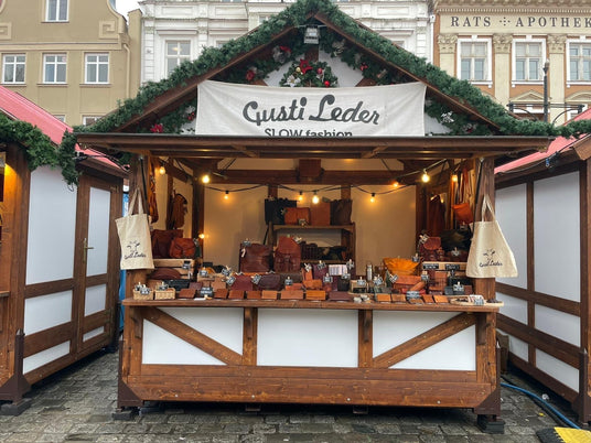 A plus tard dans l'année ! Visitez l'un de nos marchés de Noël décorés de manière festive dans toute l'Allemagne et découvrez des accessoires en cuir parfaits comme cadeaux pour vos proches - ou offrez-vous un accessoire élégant.