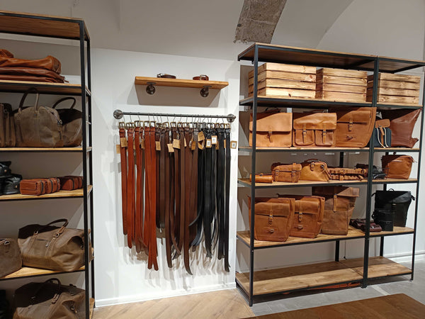 Dans notre magasin pittoresque à Salzbourg, une grande sélection de produits en cuir uniques t'attend. Du portefeuille à la banane en passant par le sac à dos de ville, nous avons tout ce que ton cœur désire. Passe nous voir, hume le parfum des articles en cuir et convaincs-toi de nos produits. Nous nous réjouissons de ta visite!