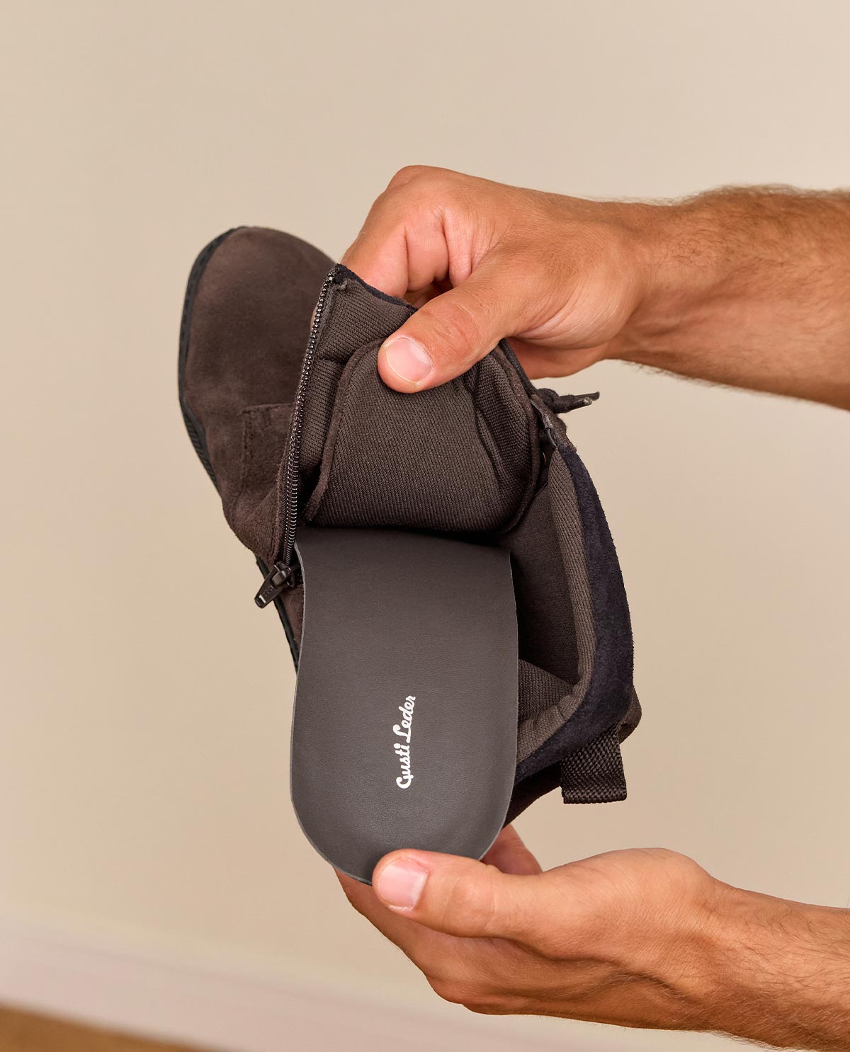 À l'intérieur, la semelle intérieure, grâce au traitement spécial du matériau Strobel, offre une sensation de marche agréablement stable et flexible à la fois. La semelle extérieure en TPR t'offre une adhérence fiable et une grande maniabilité sur différents types de sols. La doublure intérieure en cuir de mouton souple épouse agréablement le pied et complète le confort de manière notable. La boucle pratique au talon te permet de les enfiler facilement et, avec leur construction solide, elles offrent un maintien parfait au quotidien. Avec leur mélange harmonieux d'élégance et de fonctionnalité, les bottes «Qemal » sont idéales si tu cherches une qualité durable et un style adapté à tous les jours.