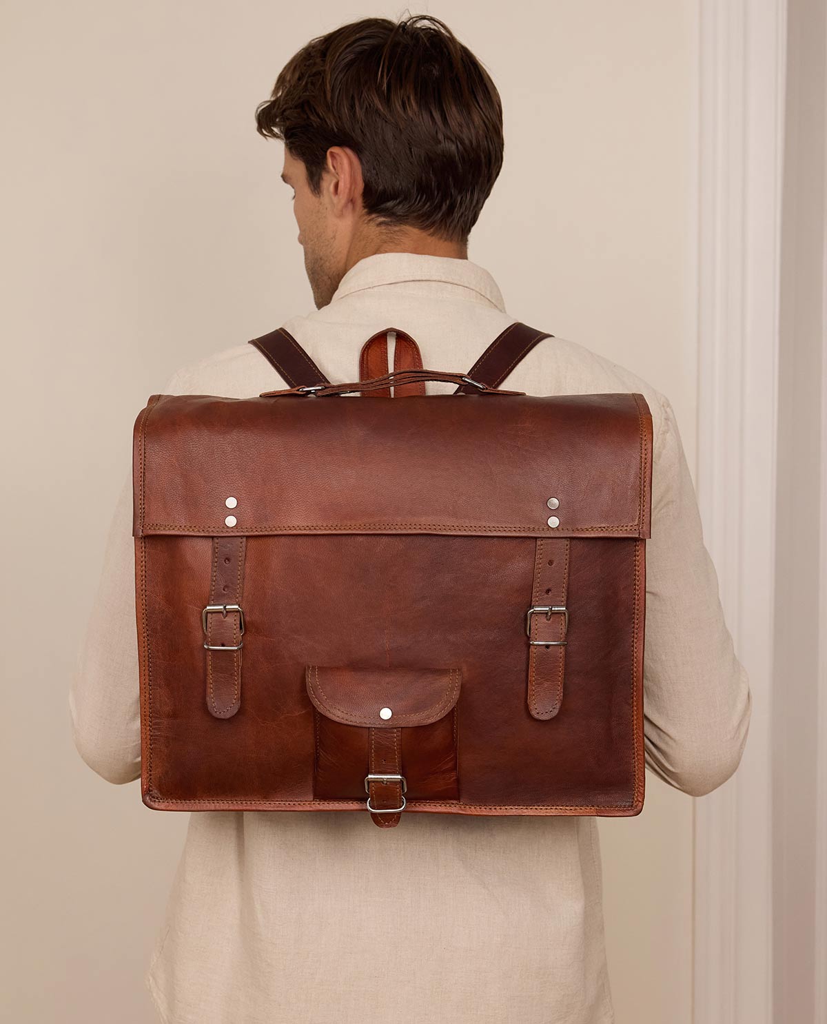 Sac à dos en cuir Sac de travail Vintage Hommes Marron Cuir
