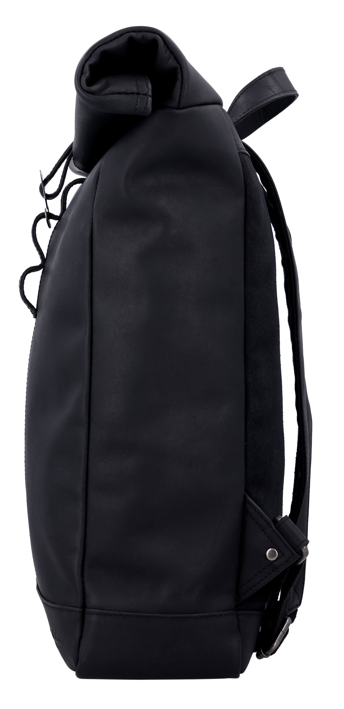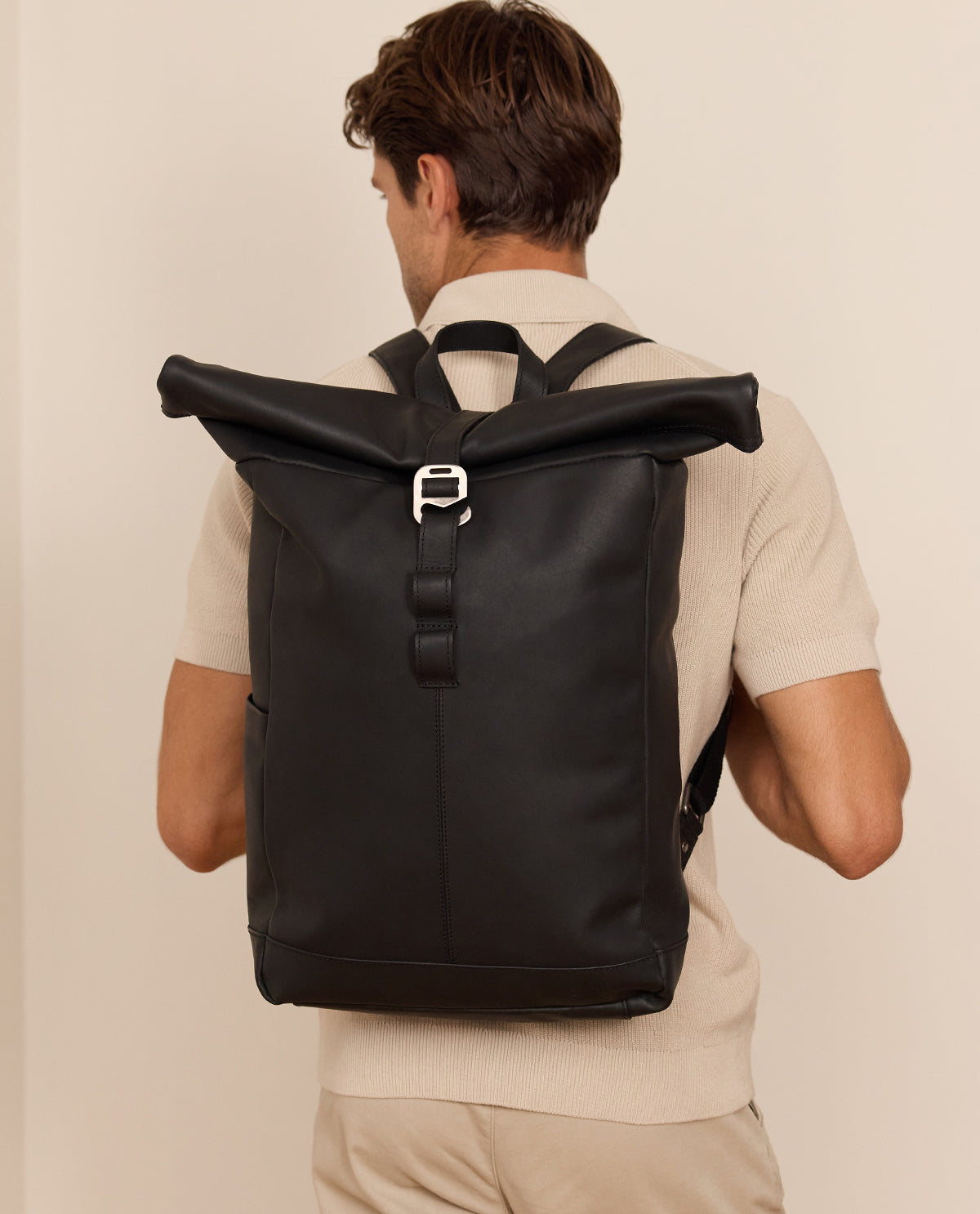 Que ce soit pour l'école, l'université ou le travail – notre sac à dos Rolltop "Bendik" s'adapte toujours. Car il sait convaincre par sa flexibilité, son grand confort de port et son espace généreux. Ce daypack classique et robuste en cuir noir se distingue surtout par son rolltop tendance – un look incontournable en ce moment.