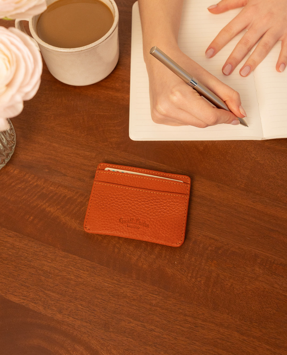 Pratique et élégant – le porte-cartes "Qani" en cuir orange