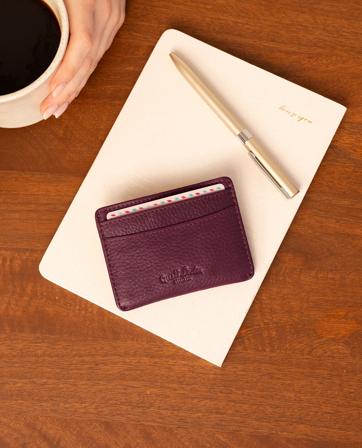 Pratique et élégant – le porte-cartes "Qani" en cuir violet