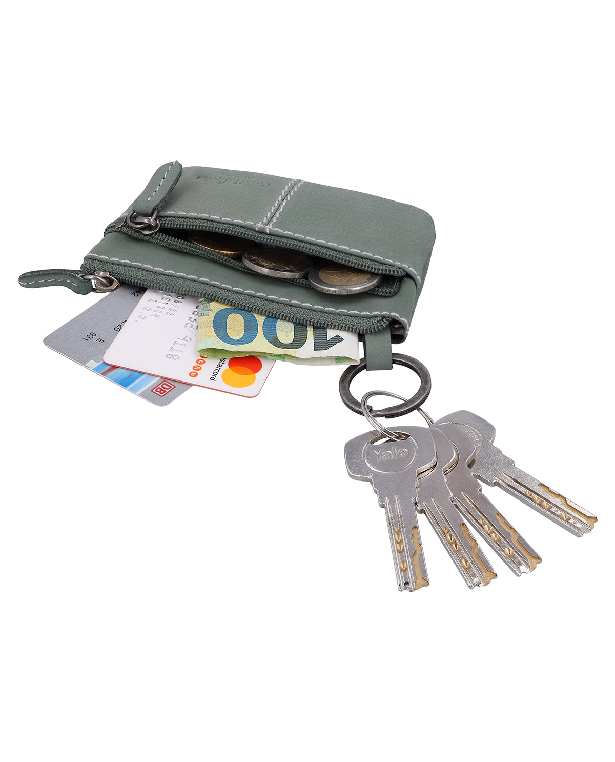 Cette pochette à clés au format pratique de poche est équipée de deux compartiments séparés, chacun se fermant par une fermeture éclair. Le compartiment plus grand, comme il se doit pour une pochette à clés, est doté d'un anneau de clés à l'intérieur, mais il est également assez grand pour ranger en toute sécurité des billets de banque ou même des cartes bancaires. Pendant ce temps, le compartiment plus petit ajouté est parfait pour quelques pièces de monnaie ou un jeton de chariot de courses.