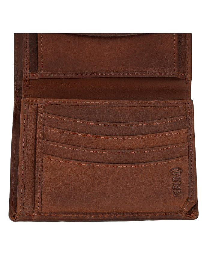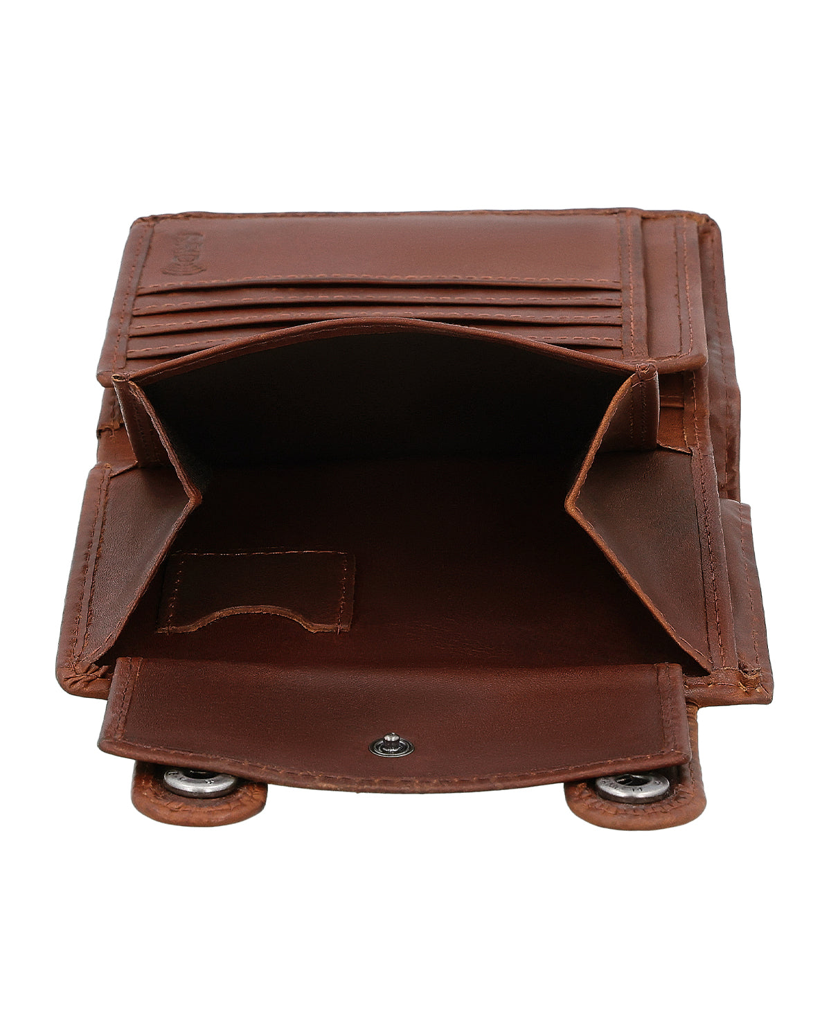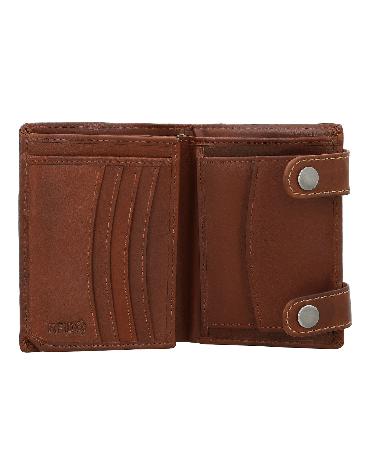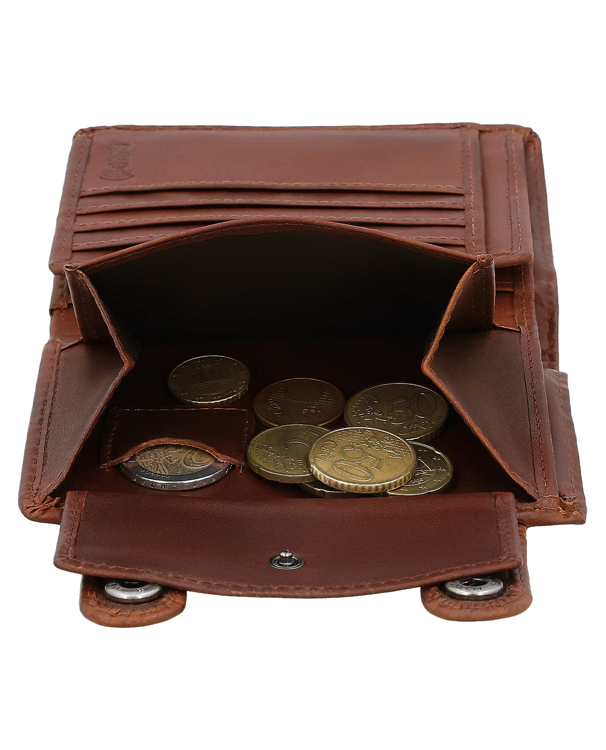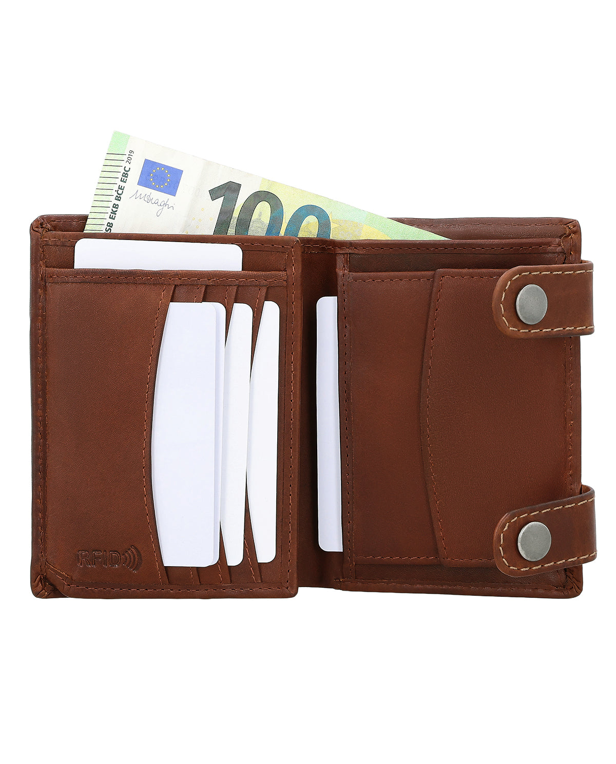 À l'intérieur, « Ben » dispose d'un compartiment à billets, d'un espace pour jusqu'à six cartes et d'un compartiment à monnaie qui se ferme par un bouton-pression. Ainsi, rien ne tombe sans être contrôlé. Pour le petit moment quotidien, il y a aussi un compartiment à monnaie supplémentaire pour une seule pièce – parfait si vous voulez avoir rapidement une pièce à portée de main. Fabriqué en cuir de vachette de haute qualité, le porte-monnaie se ferme avec deux boutons-pression qui sont également équipés de languettes. En haut, il y a une ouverture pour attacher la chaîne de pantalon fournie. Ainsi, vous protégez votre portefeuille des pickpockets, surtout si vous le rangez dans votre poche arrière. Dans le sac ou la veste – et c'est parti avec votre portefeuille « Ben » !