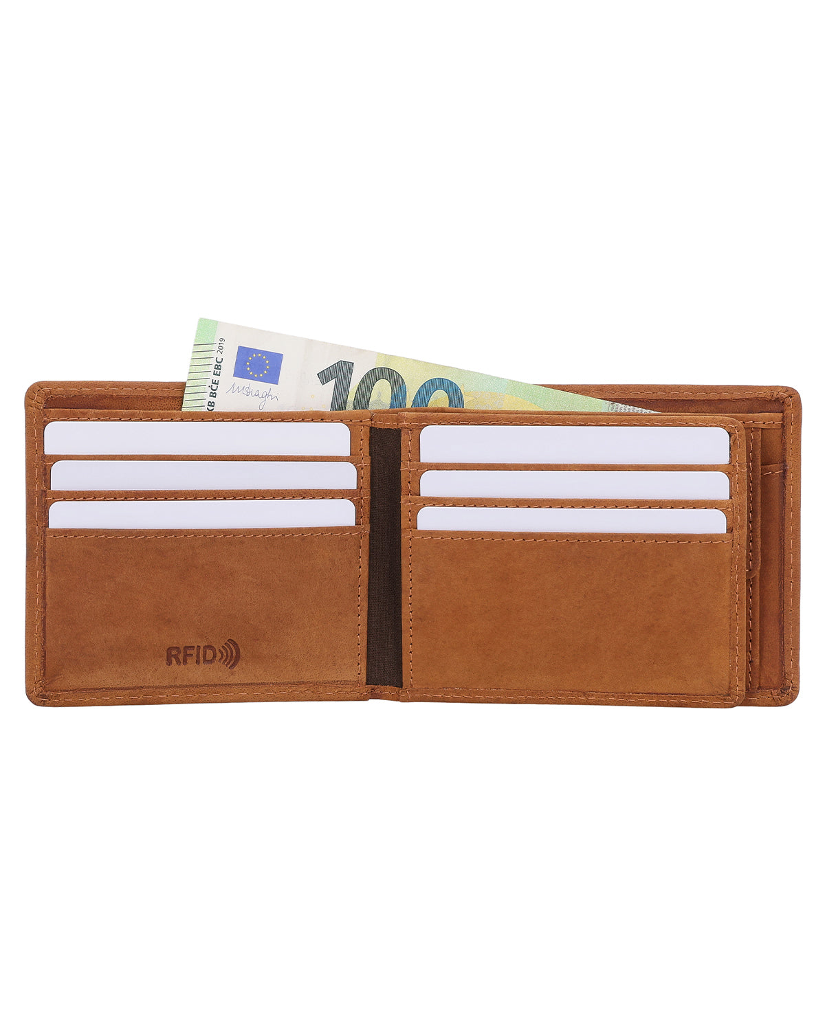 Important: Dans cette version, "Foster" est doté d'une protection RFID supplémentaire. Comment fonctionne le bloqueur RFID ? Une pochette de protection RFID est cousue dans le portefeuille et perturbe le signal des lecteurs. Lorsque le portefeuille est fermé, il protège toutes les cartes à l'intérieur. Ainsi, vos cartes sont encore mieux protégées et les personnes non autorisées n'ont pas accès à vos données. Cela signifie pour vous : Une sécurité supplémentaire !