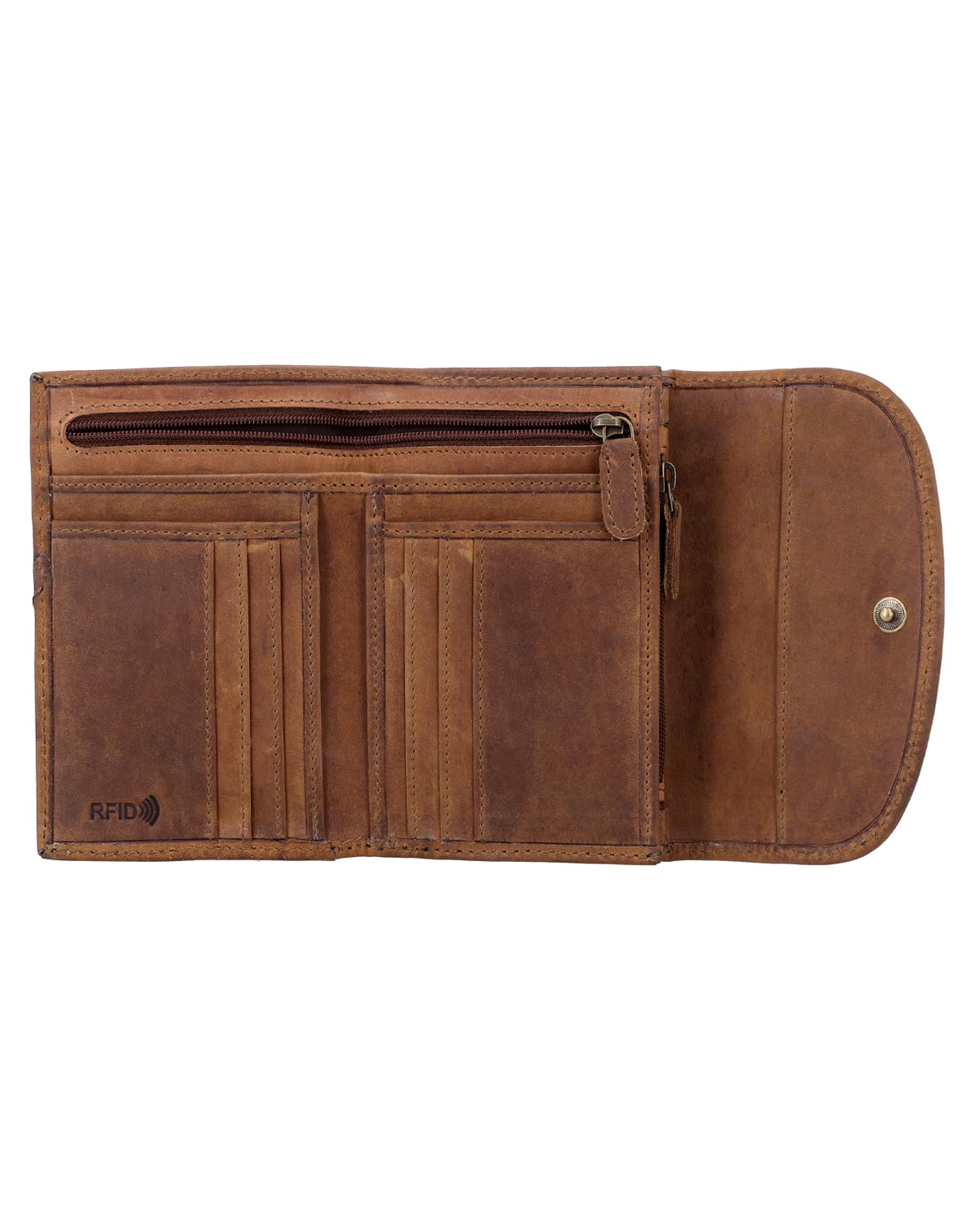 Le portefeuille "Bryanna" en cuir marron de haute qualité allie un design intemporel à une fonctionnalité exceptionnelle. Avec sa fermeture à bouton-pression sécurisée, il garantit que tous vos objets de valeur sont conservés en toute sécurité et protégés. Le portefeuille offre de nombreux compartiments pour cartes, intelligemment divisés, vous permettant d'avoir vos cartes à portée de main de manière claire et rapide. Particulièrement pratiques, les poches zippées à l'intérieur offrent de l'espace pour des pièces de monnaie ou d'autres petits objets de valeur.